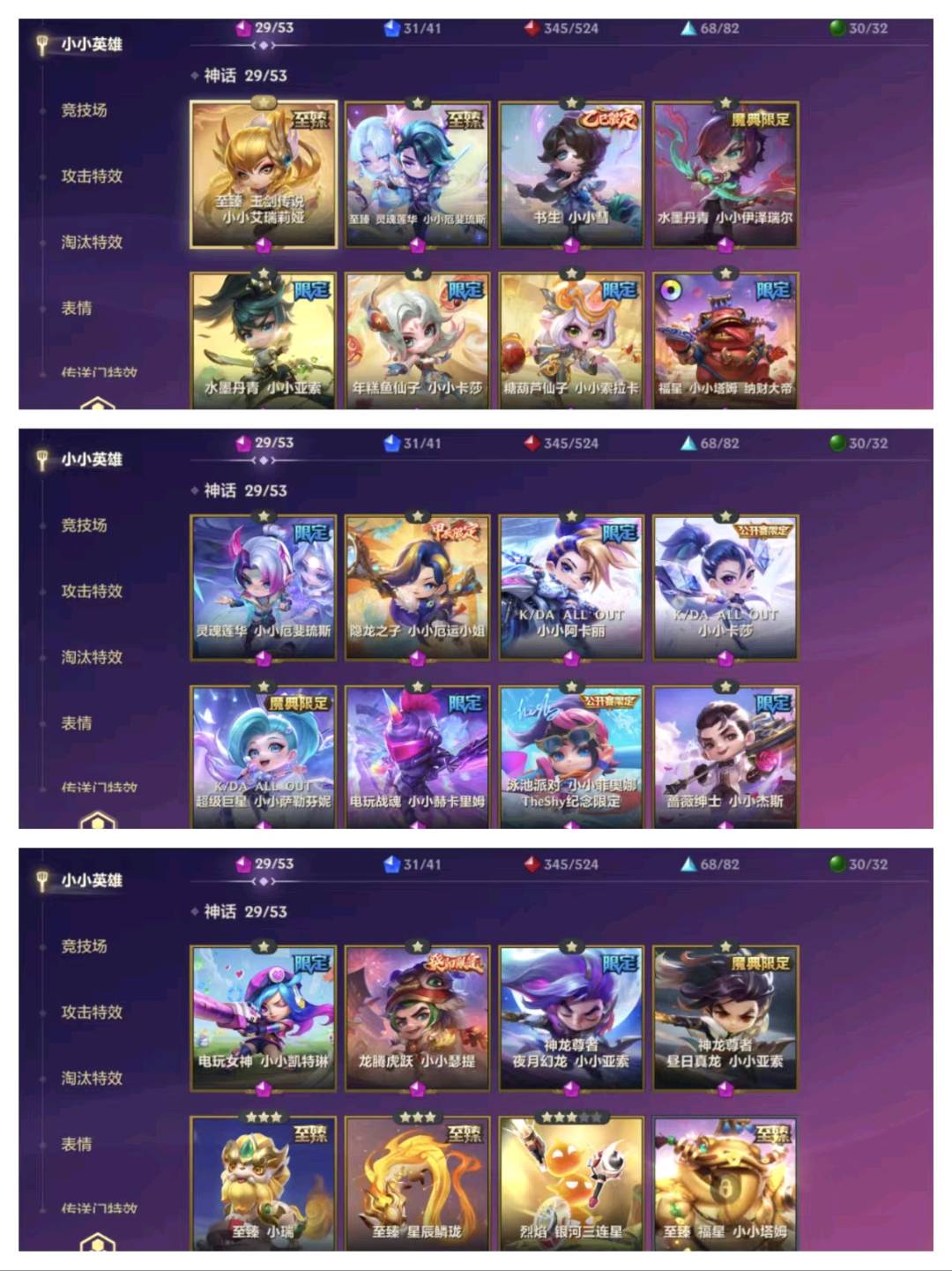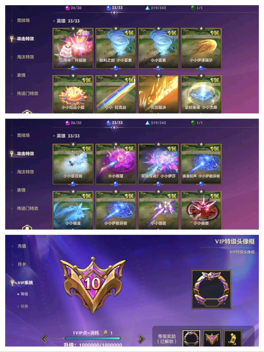 极品V10✨4至臻29神话✨至臻小小艾瑞莉娅✨至臻小心厄斐琉斯✨幻境竞技场✨
