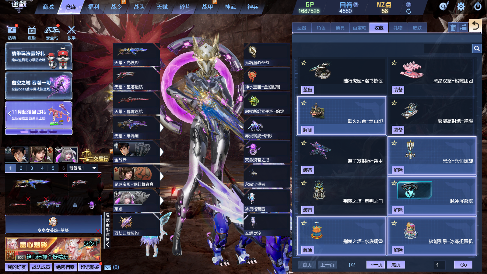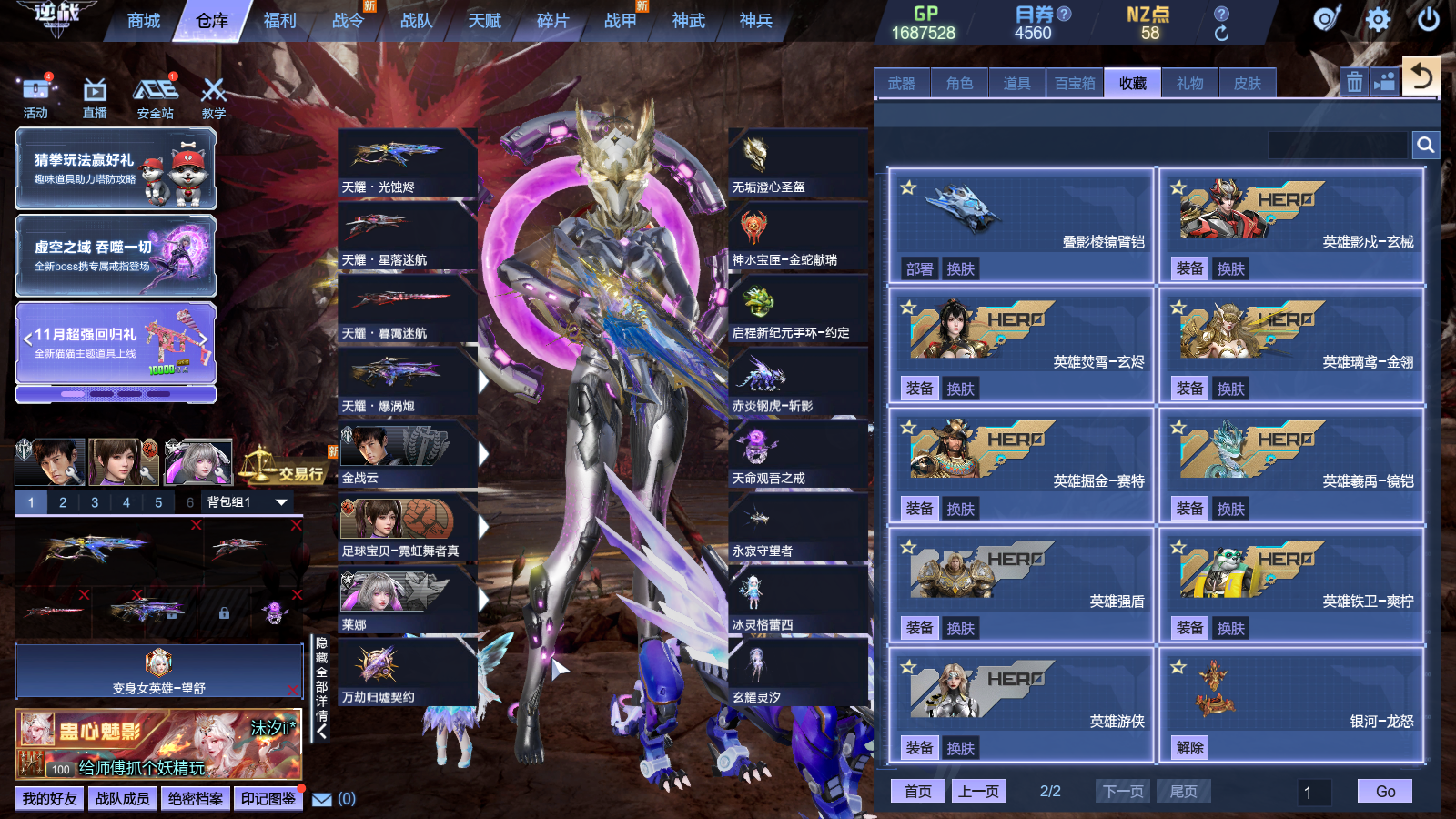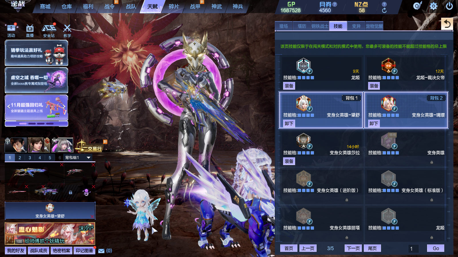 11月5号新增:变身女英雄-望舒、变身女英雄-璃璎、龙曦、全息搭建枪、焦油、