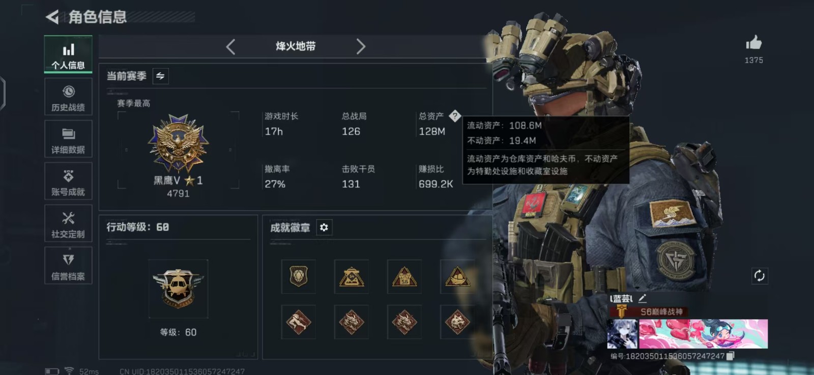 【3614.43w哈夫币】9格7体,装备随便用,冻结或高危都可以秒解,60级🔥枪皮196🔥绿色手搓🔥纯币号