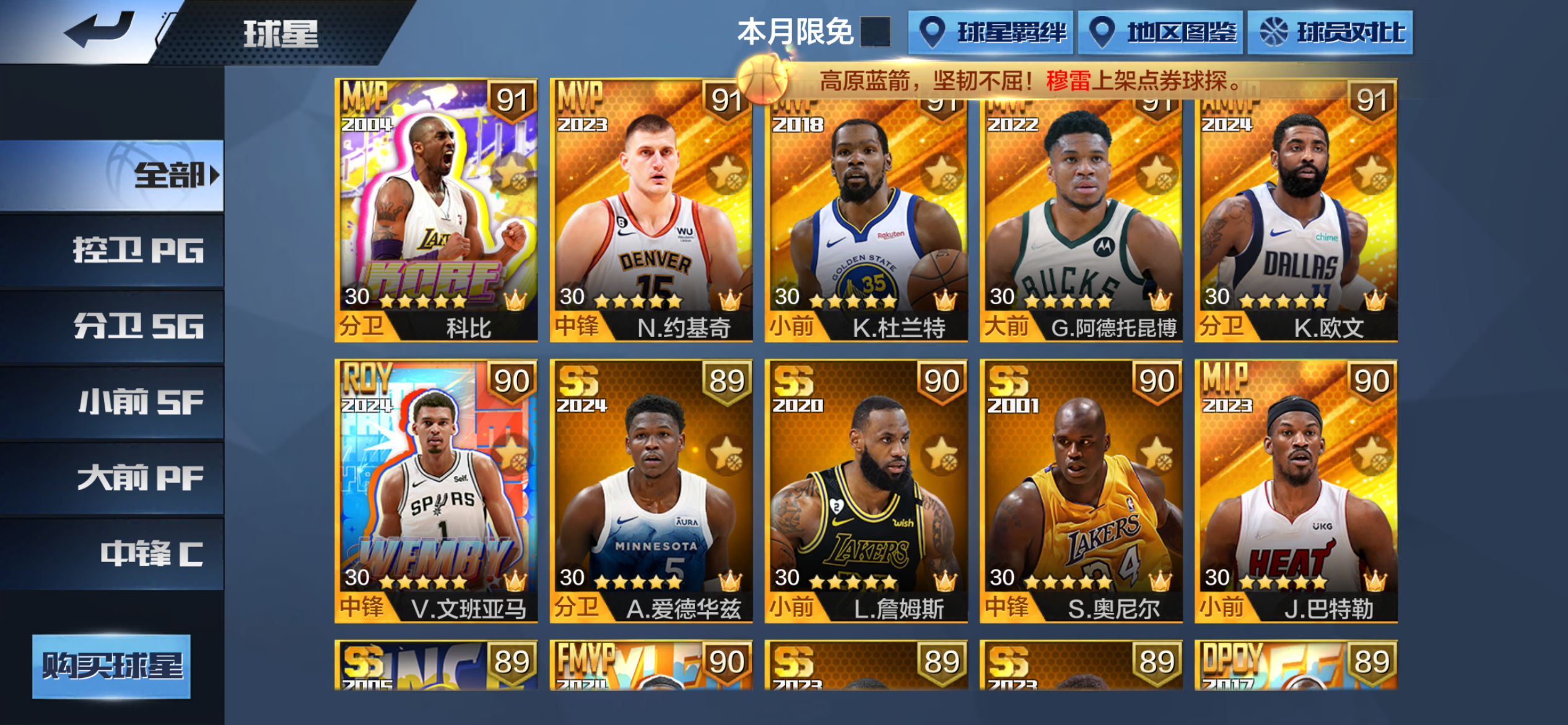 - 点券球员: 30