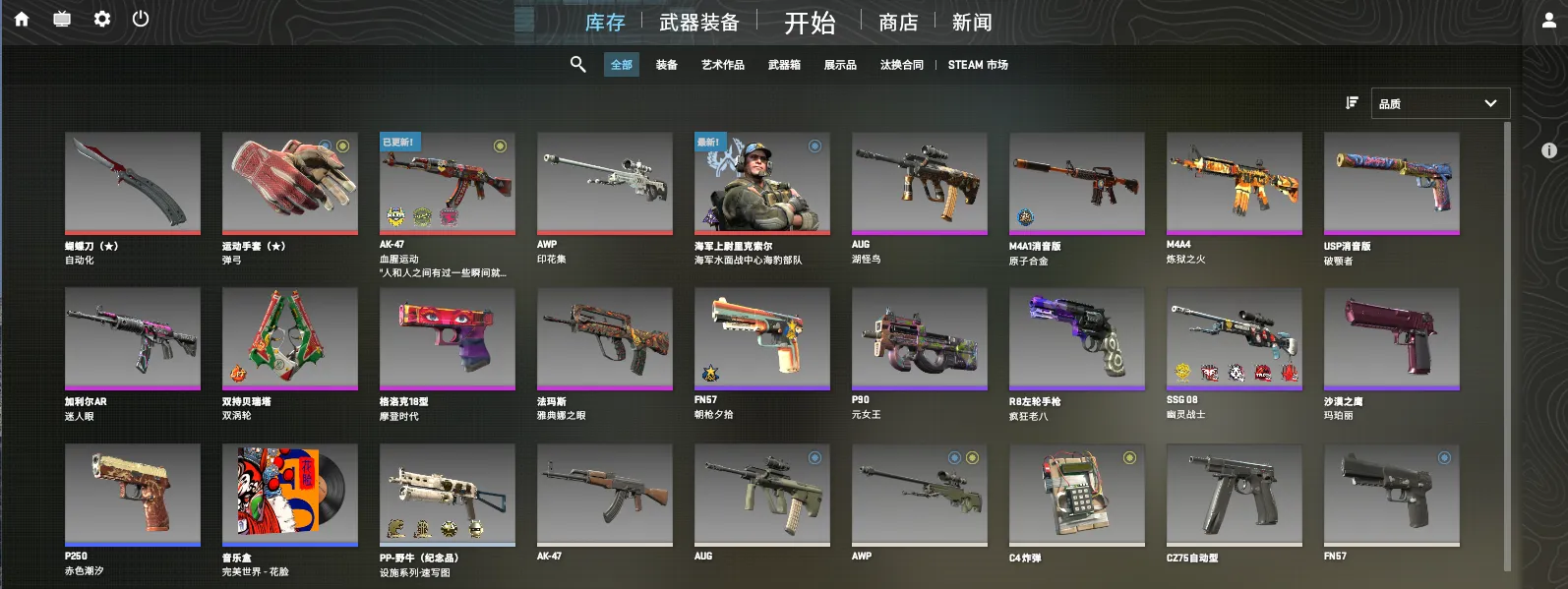 可5E⚡自动化蝴蝶刀⚡弹弓手套⚡血腥AK⚡印花集狙⚡炼狱M4⚡原子合金A1