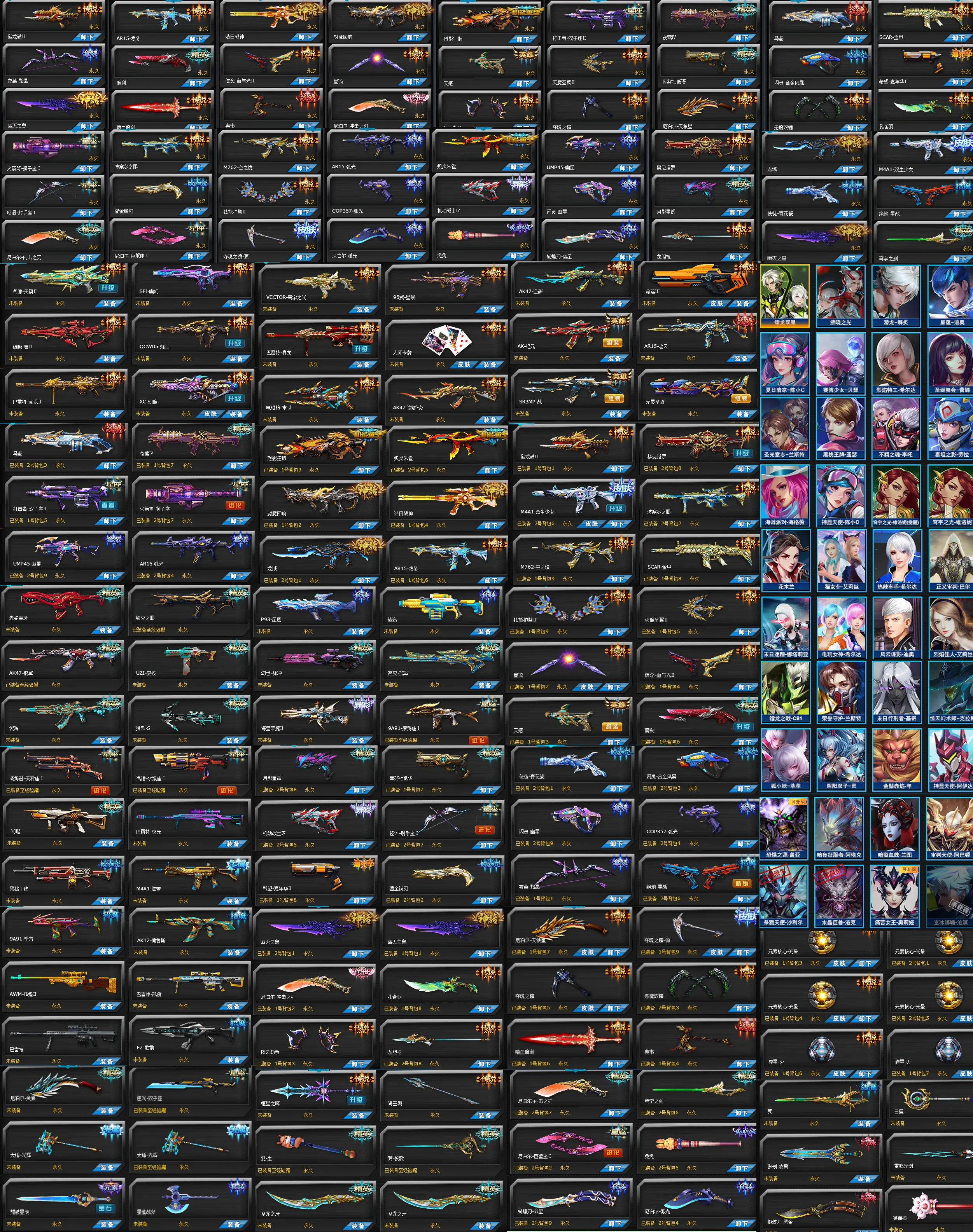幽星套老灭魔圣翼血清U3飞行雷源跃动星辰烈影狂狮炽炎朱雀封魔回响浩日战神龙域凛冬,狱龙破禁忌塔罗,凤舞双生少女波塞冬之眼空之镜金甲马超夜莺双子座II,狮子座幽星弧光天鳞幽幻破晓君蜂王,老真龙幻魔穹宇之光觉醒星陨大师卡牌电磁枪末世逆鳞炎逆鳞命运,战纪元满配,赵云赤蛇毒牙原核,猎枭S幻世寂灭翡翠海皇魔羯座天秤座水瓶座黑桃王牌,星蕴套海滩套,飞行套欺霜星流血与光天惩罚满配,魔刹月影星辉羊枪机动战士射手座希望嘉年华鎏金铳刃,青花瓷闪灵合金风暴夜幕黯晶绝地星战,幽灭之息冲击之刃孔雀羽风云劫争龙胆枪天狼星夺魂之镰源皮肤,恶魔双镰嗜血魔剑典韦闪击之刃穹宇之剑兔兔巨蟹座恒星之辉海王戟狐生,两把圣龙之牙贪狼,耀破星辰金元素,光晕碎星灭精英之师,镭龙双星,拂晓之光贝瑟兰斯特李吒,神显天使维洛妮,花木兰女亚瑟基奇,幻术师狐妖阴阳双子年兽蜘蛛兰图阿巴顿痛苦女王。