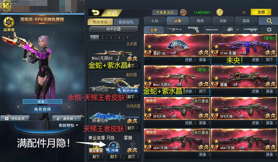 传说:墨韵合!未央影魔!金蛇+紫水晶无限ex!血魔!AK+RPK天神…