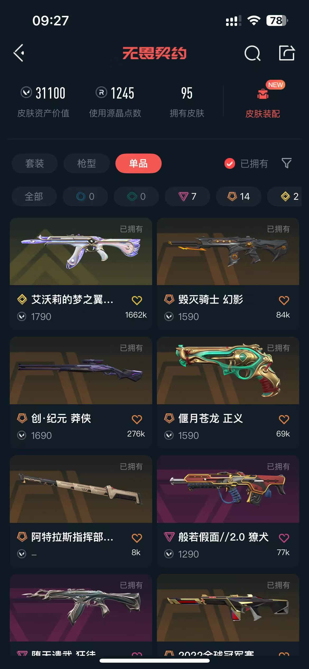 【当前段位:黄金II】冻结秒解✨2022全球冠军套\781-A协议 幻影\艾沃莉的梦之翼\掠影 狂徒\离子武器//2.0