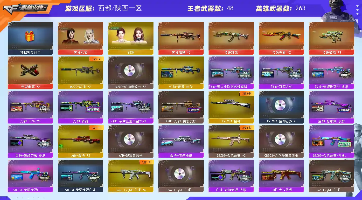 【西部】天花板♥女帝12传说♥全新EP全套♥幻神星神裁决三件套♥满配手枪♥带序列号主流全音效质量皮♥东西很多具体看图喜欢的老板可以收藏♥感谢老板的支持