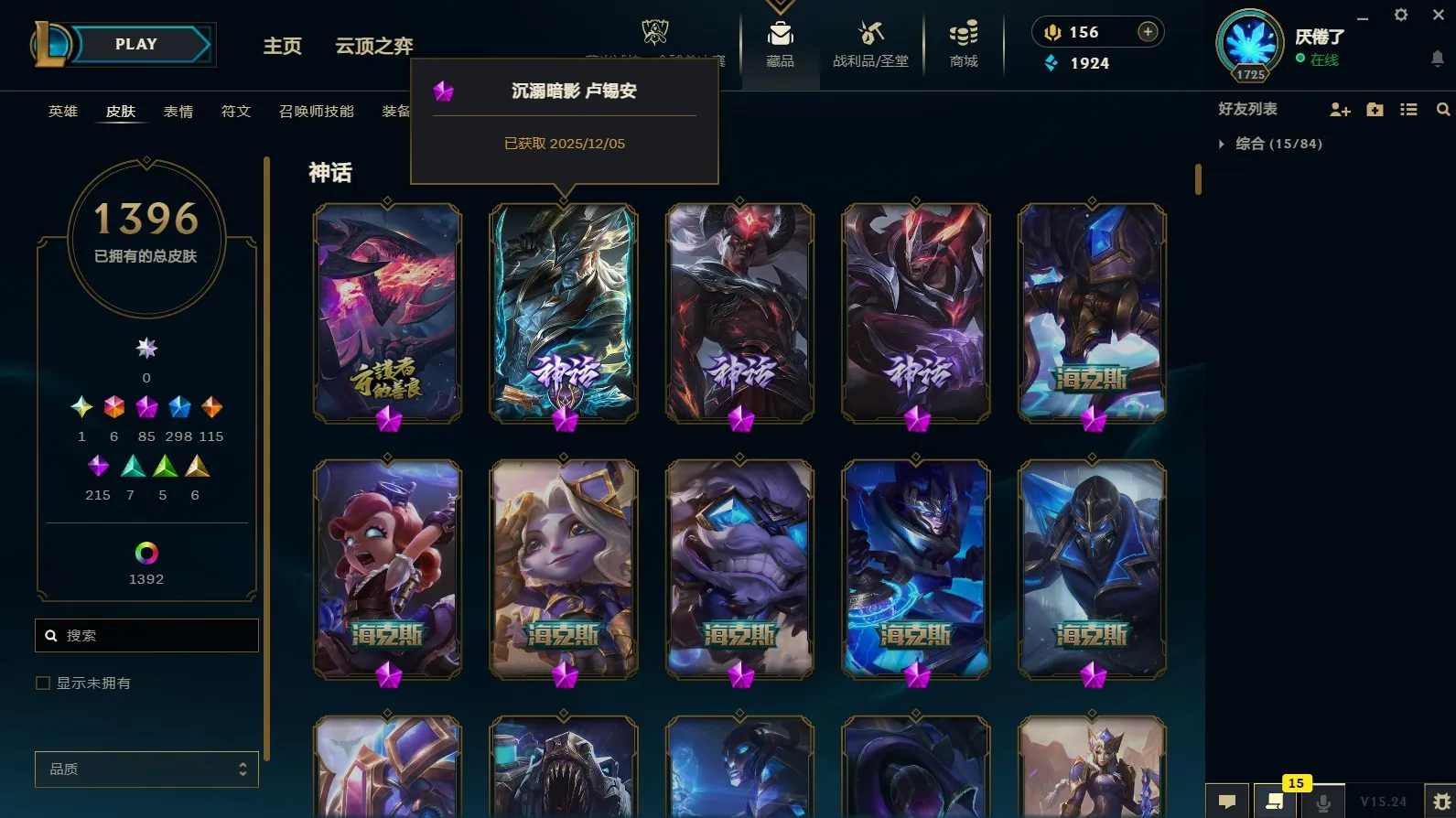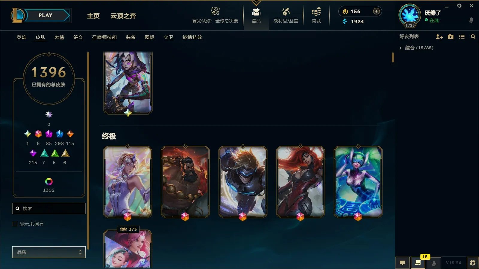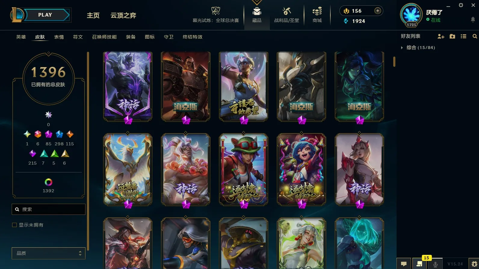 - 神话皮肤数量: 85