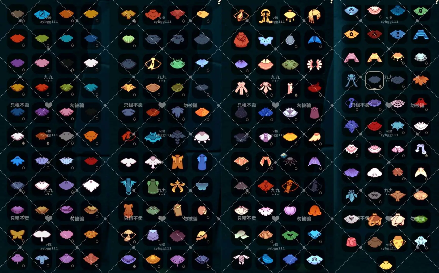 礼包:时尚日套装/中秋节套装/五周年斗篷/玉桂狗联动/风之旅人/荷叶伞/四叶草/流星斗/盘龙围巾斗/龙鳞长袍/金鳞耳坠/肯德基联动/九色鹿礼包/音 乐桌/透明蛛丝斗/吸蟹伯爵/阔腿牛仔裤/火焰墨镜/爱心墨镜/兔子拖鞋/冲浪板/凉鞋/悦动跑鞋/小提琴/暗彩装扮/奥利奥 /绊爱联动全套/周年吉他/海螺/野餐垫/园丁装扮/祥云伞/球赛/雪人斗篷/欧若拉全套/彩虹耳机耳钉/星月头冠/皮皮猫/簧火点心/音韵吉他/雏鸟之琴/茶桌/小船/跷跷板/秋千/白雪斗篷/彩虹帽/女巫裙/枯角/南瓜/兔子/小王子围巾/星球夹克/狐狸/夏日阳伞/粽子斗/绒帽/福娃/铜钱斗篷/圣诞鹿角/蛛网斗篷/女巫帽/蝙蝠套姆明/鸦羽/扫帚,所有礼包都有,新礼包已秒氪