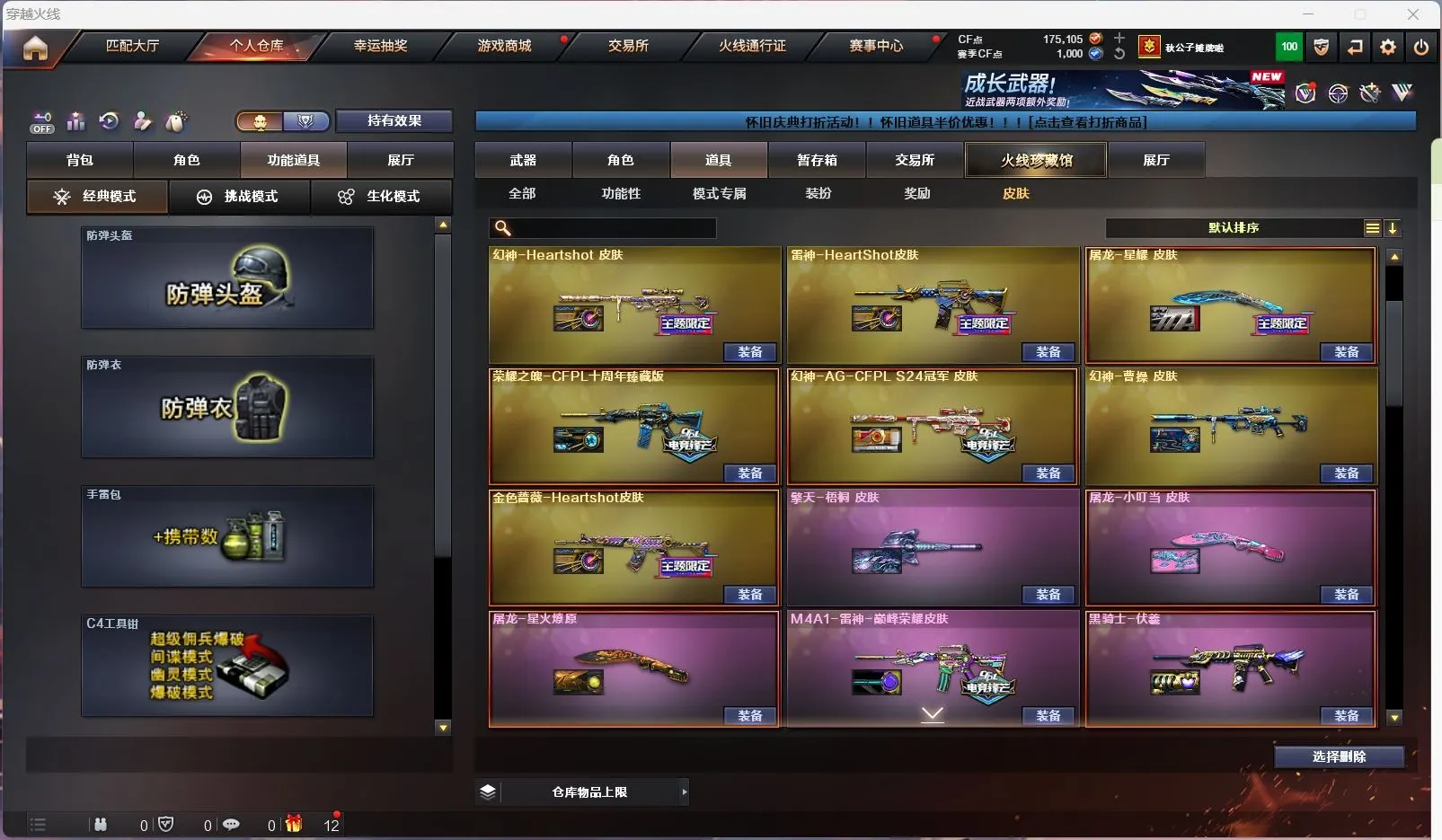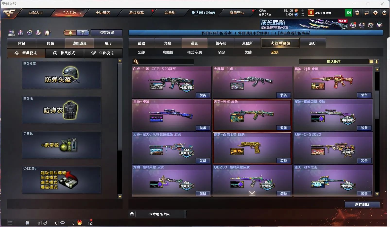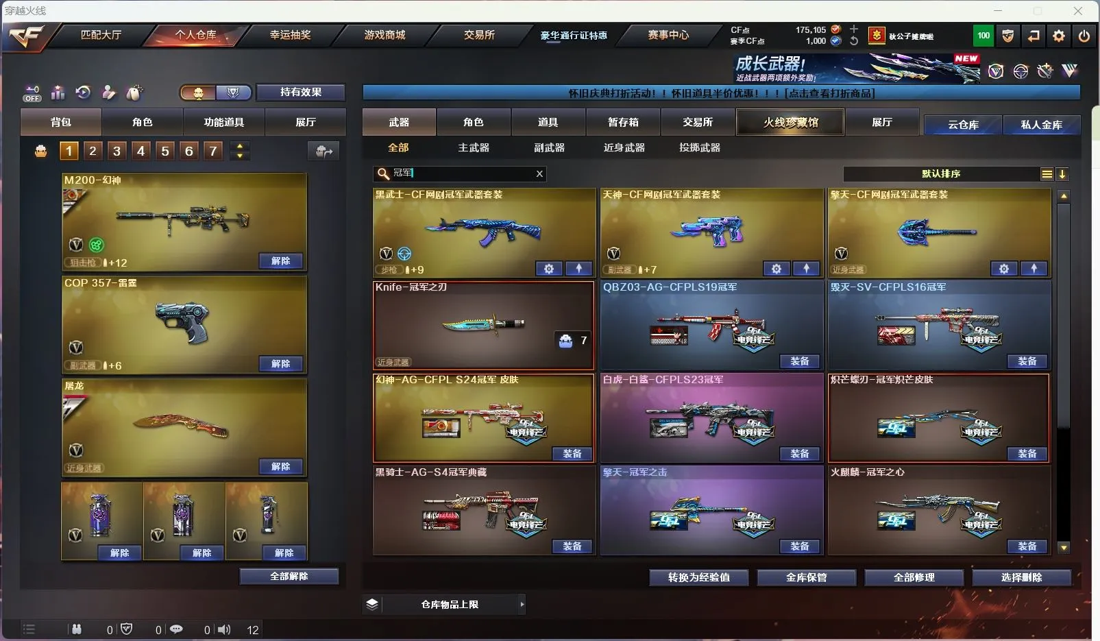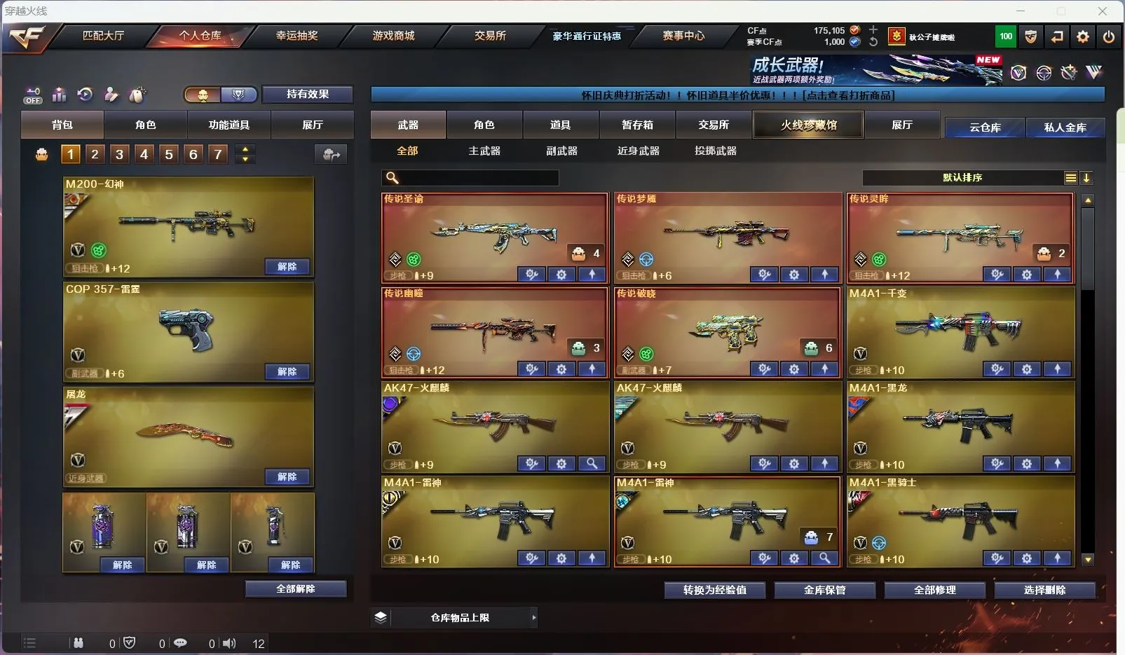 【亮点解析 双传说角色 幻神9皮带卡 星神三件套 裁决带皮】【传说星骇 传说影煞】【传说幽瞳 传说破晓 传说圣谕 传说梦魇 传说灵眸 】【m200幻神+音效卡+周瑜+巅峰荣耀+ag17冠军+cfs2022+星火小队+丹凤+女团+ag24冠军+曹操 +冠军之刃】【98k星神+音效卡+傲竹金蛇+巅峰荣耀】【m200竞技荣光套+云悠悠】【王者幻神 王者风神 王者星霆】【盘龙 炼狱 5烈龙 炽芒蝶刃+冠军炽芒】【scar白虎+白鲨冠军+暗星】【qbz金色蔷薇+女团+斗鱼+巅峰荣耀+ag19冠军】【qbz天罚 】【朱雀】【玄武】【火麒麟+冠军之心 +巅峰荣耀+荣耀世冠+横秒之巅】【黑龙】【雷神+卡+n9+冠军之魄+虎牙+荣耀之魄+巅峰荣耀+荣耀之魄十周年+女团】【黑骑士+卡+冠军之势 】【毁灭+卡+冠军之怒+荣耀之怒+sv16冠军】【极光】【裁决+巅峰荣耀 】【武器:黑武士 堕天神 武圣 夜魔 云龙 王者之心 王者之魄 王者冰魄 王者炎心 荣耀世冠火麒麟 荣耀世冠雷神 qbz王者蔷薇 王者青龙 王者芳薇 】【21手枪:修罗*6 天神 武圣 雷霆 堕天神 夜魔 幻灵 竞技荣光 usp冥王 云龙 沙鹰幻兽 荣耀世冠柯尔特 雷霆王者 usp雷暴王者】【27刀具:屠龙*5 龙啸 擎天 麒麟刺 尼泊尔雷霆 斩神刀雷暴 堕天神 幻灵之峰 麒麟刺 云龙扇 王者之锋 王者之啸 王者之击 荣耀世冠龙啸 王者玉锋 王者冰锋 女皇利刃幻兽 】【14雷套:幻兽雷 雷暴雷 雷霆雷 堕天神雷*6 夜魔雷*5】【小人枪:雷神小红 m200喜狮迎春 cop白鲨 MAC-10-千针棘鲨】【音效卡:星神音效卡 幻神音效卡 黑骑士音效卡 毁灭音效卡 雷神音效卡 】【四防角色:王者葵惊若翩鸿 王者潘多拉 王者岚兮儿 职业经理 】
