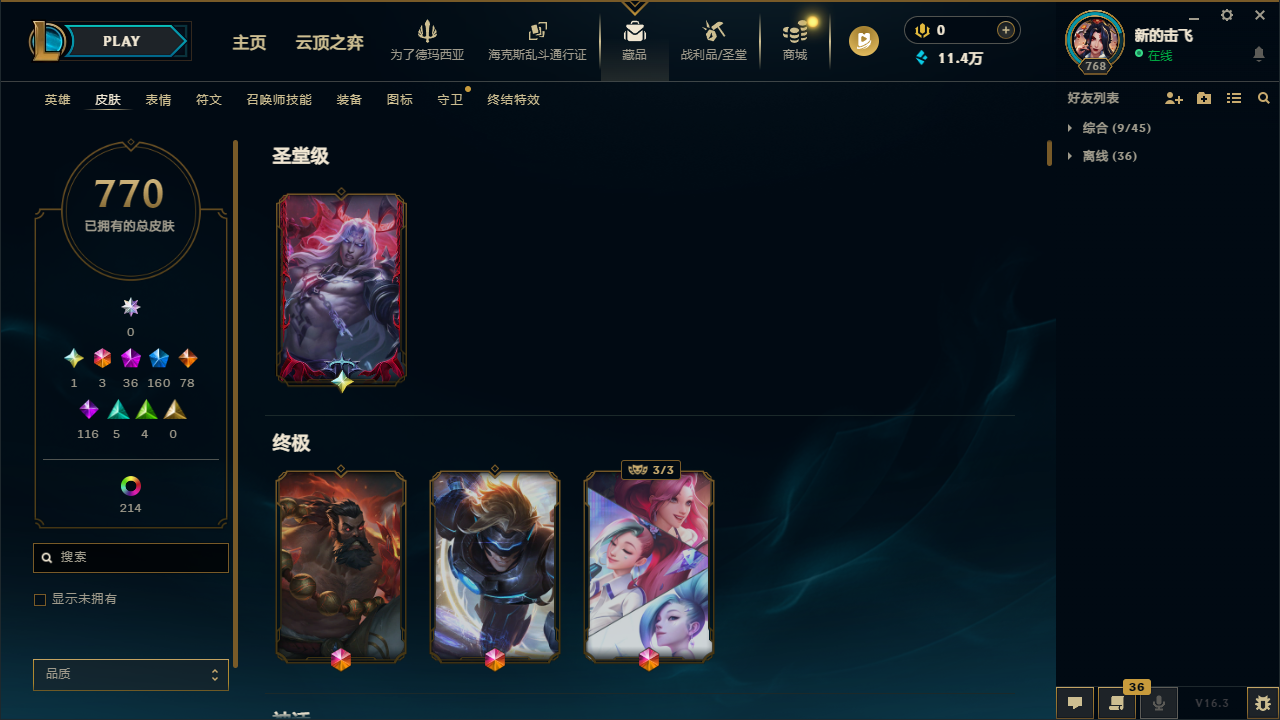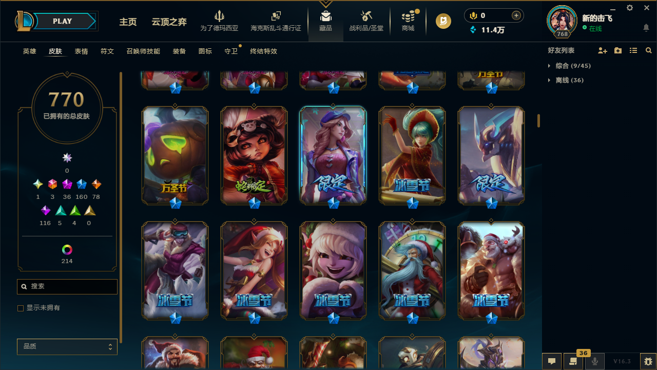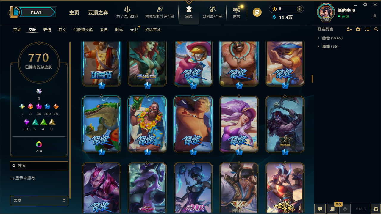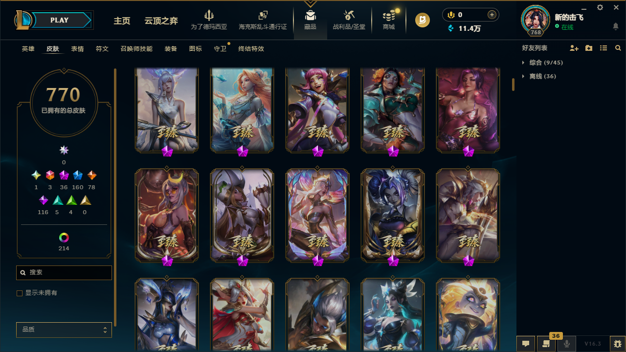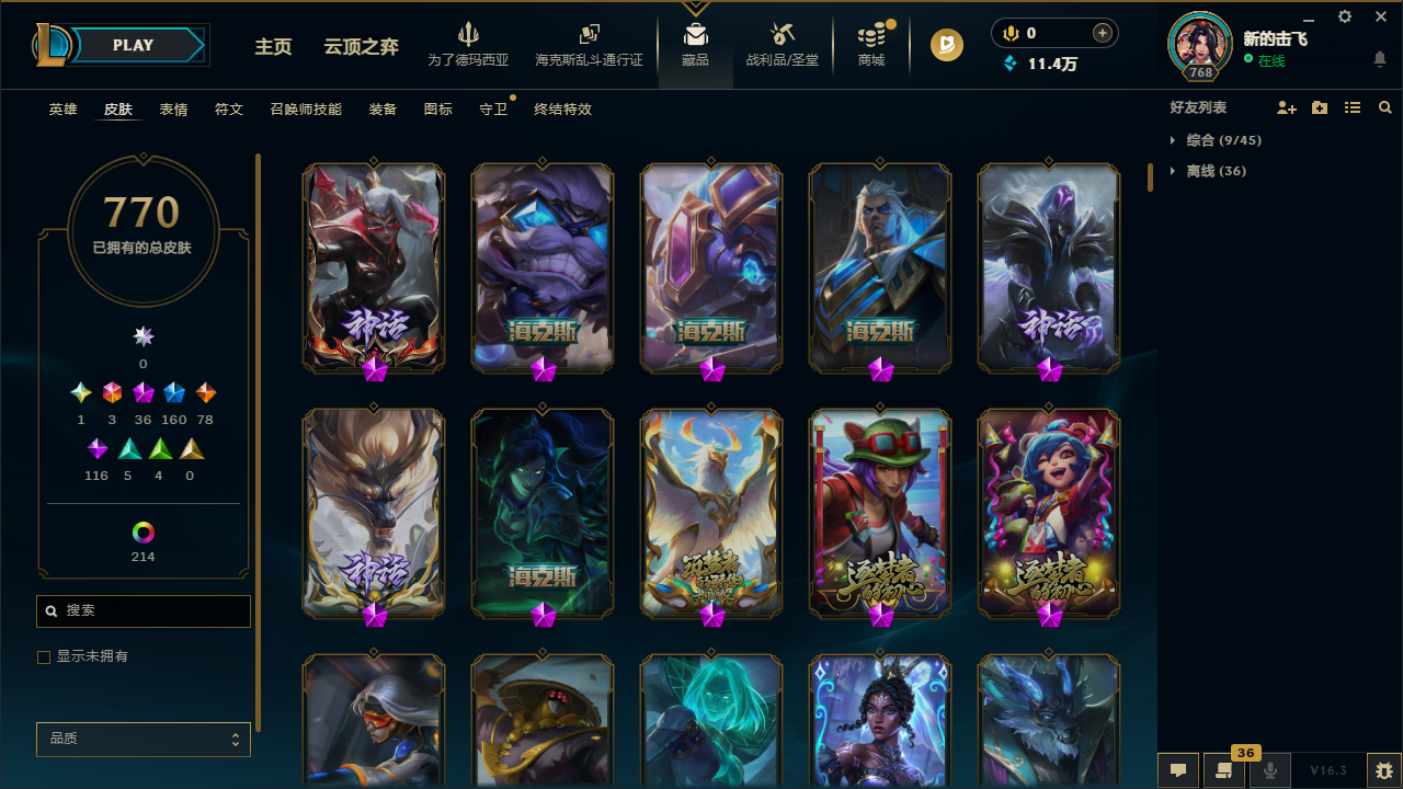 🈲逃跑|1033皮|圣堂王佛耶戈🔥冰原酒桶💎|踏雪寻梅套🌸神话龙王🐲等|770皮+263炫彩皮 | 36神话皮 |47臻彩|160限定 | 23至臻⭐ 3终极皮|勇敢的诺手|灰烬骑士派克|定海神针猴子|全球总决赛皇子 黄鸡|斩星魔剑剑圣|青花瓷冰女至臻|至臻星之守护者 辛德拉|金龙瑟缇|怦然心动女警|等热门优质皮肤。