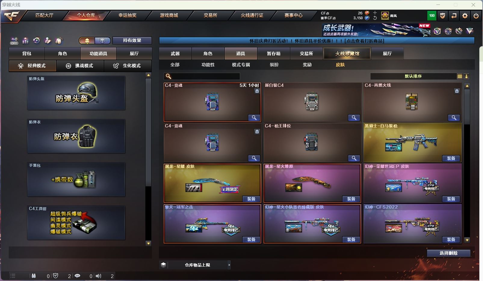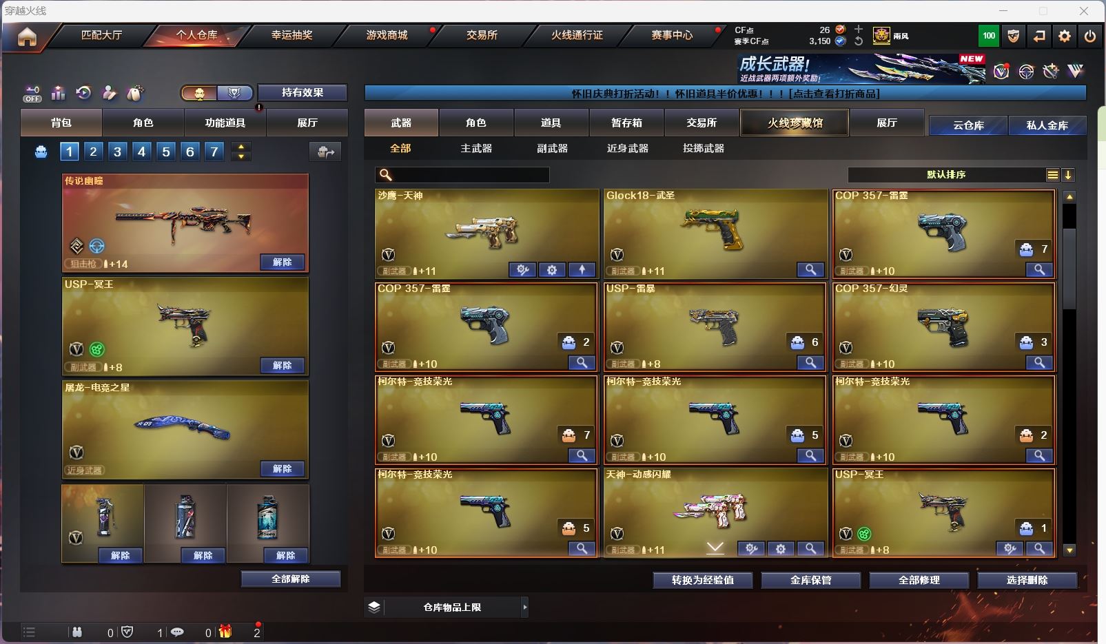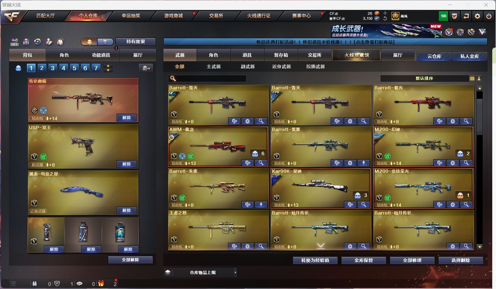 【亮点解析 传说角色 幻神3皮带卡 星神三件套 裁决三件套 生化高配 】【四防传说艾莉莎】【传说幽瞳 传说光耀 】【m200幻神+音效卡+荣耀世冠ep+星火小队+cfs2022】【98k星神+音效卡+璀璨】【m200竞技荣光套+usp雷暴+云悠悠】【王者幻神 】【6烈龙 炼狱 死亡之眼】【白虎电玩 】【qbz金色蔷薇】【qbz天罚】【火麒麟+卡+even+冠军之心】【黑龙】【雷神+卡+荣耀之魄+白鲨冠军+荣耀世冠 】【黑骑士+卡+冠军之势 】【毁灭+卡+荣耀之怒+冠军之怒+cfs2018+sv16冠军】【极光+卡】【裁决+卡+运输船 】【Knife-荣耀世冠EP】【雷暴套 】【武器:武圣 雷霆 雷暴 王者之心 王者之翼 王者之武 王者之魄 王者之势 王者之幻 王者炎心 】【15手枪:修罗*3 天神 武圣 雷霆*2 usp雷暴 幻灵 竞技荣光*4 usp冥王 柯尔特荣耀世冠白鲨 王者之魂 】【18刀具:屠龙*4 龙啸 擎天 麒麟刺 尼泊尔雷霆 斩神刀雷暴 竞技荣光 玄豹 王者之锋 王者之心 王者之击 】【14雷套:雷霆雷*7 雷暴雷*7 】【小人枪:cop白鲨】【音效卡:星神音效卡 雷神音效卡 裁决音效卡 幻神音效卡 极光音效卡 毁灭音效卡 火麒麟音效卡 黑骑士音效卡 】【四防角色:妮妮】