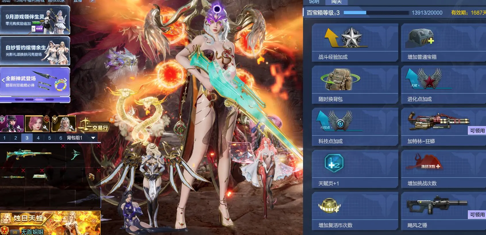 全套涅槃女王觉醒女王精绝女王图鉴快14级!满配天耀十件带皮肤(宠物有皮)和9+9山海(带皮)星寰双战甲全满,暗星无冕战盔,浩海龙腾战盔,量子魔盔,腾风带皮肤,元、狂蟒戒、晶体戒,日月戒,天枢照曜戒,塔防主流英雄焚霄,掘金,璃鸢金皮,太子龙王都有,变身英雄女帝龙曦凌霜,塔防伴生灵暴君锋棱两条霸王龙,猎场伴生灵双姝,双子和双龙参商。三级百宝箱