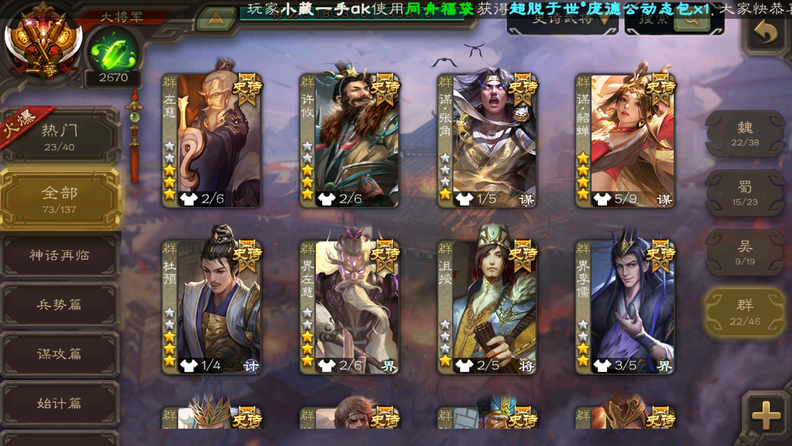 【全平台】 【锦鲤有卡】三卡一等74史诗势魏延势辛宪英势陆郁生至尊钟会回廊神荀彧神司马懿文鸯曹髦司马昭