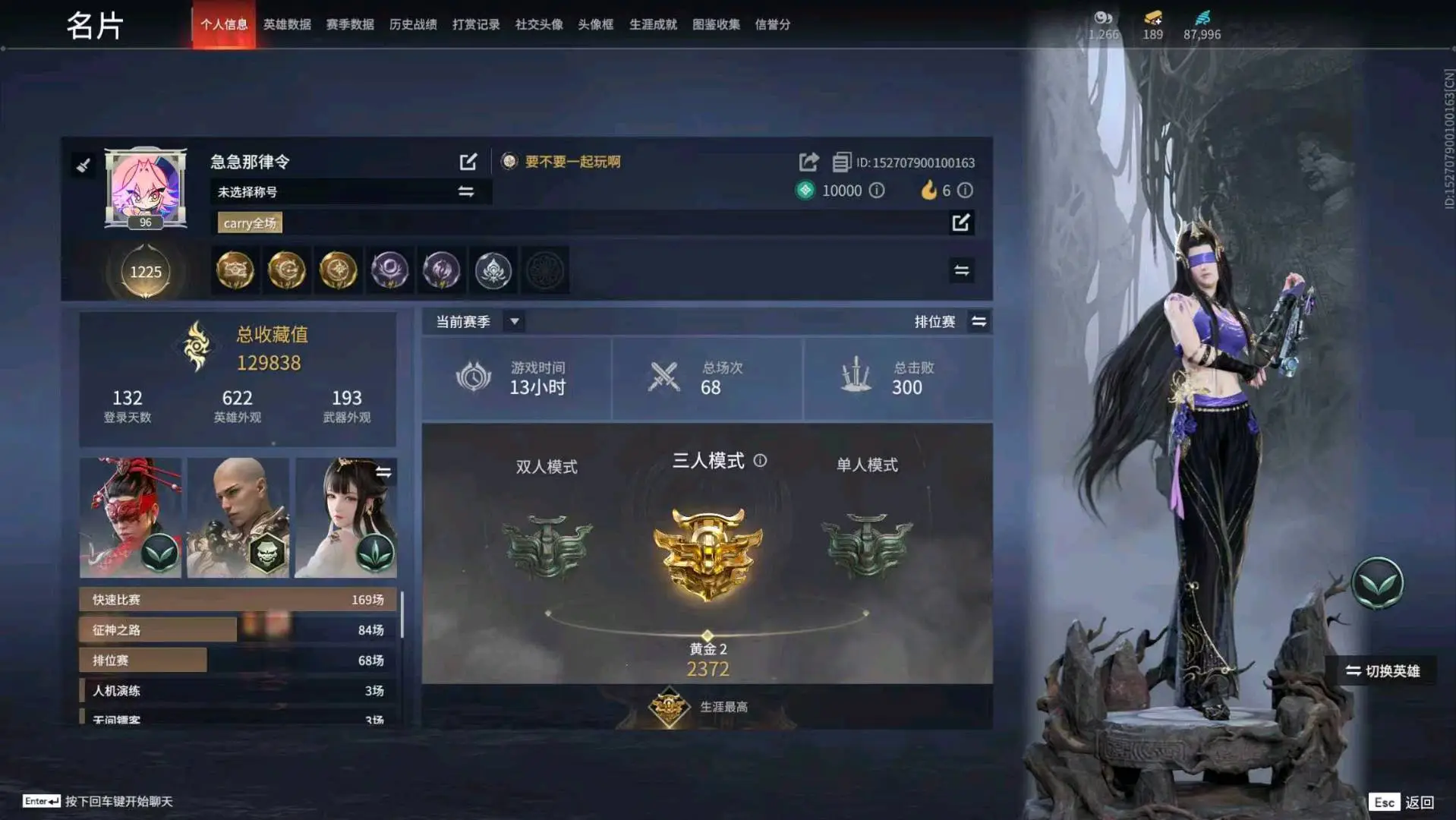 【YongJie0.8元包夜1.2元包天】129838收藏值+20游戏全英雄6红250金800+外观