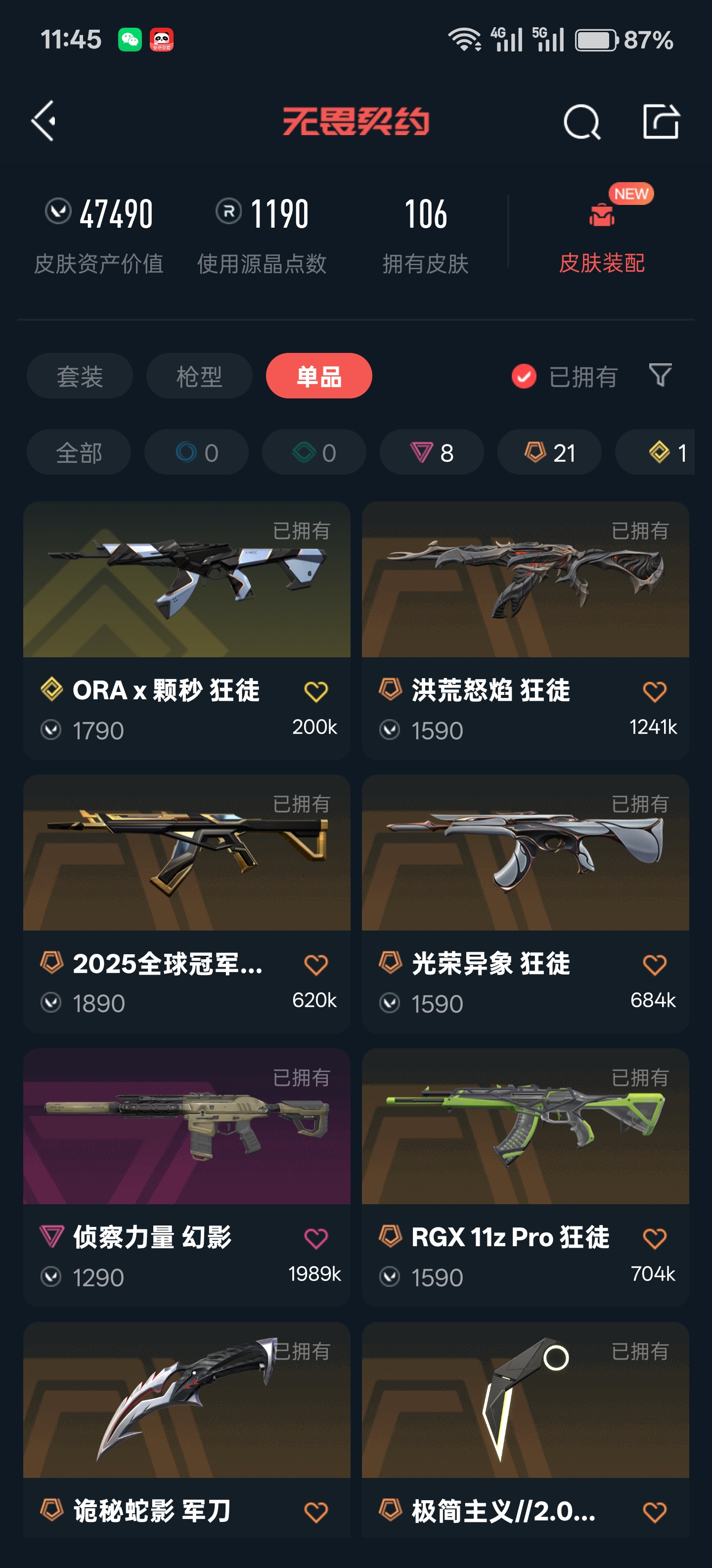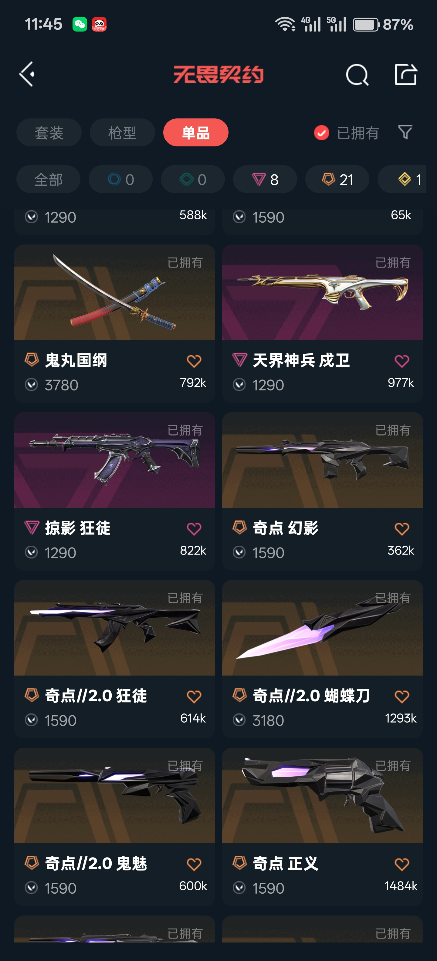 【当前段位:铂金I】4.7w库存🔥25冠军套🔥颗秒/混沌序曲/塑水宗/显卡/噬影者/流脓/奇点狂徒⭐鬼丸国钢⭐蝴蝶刀
