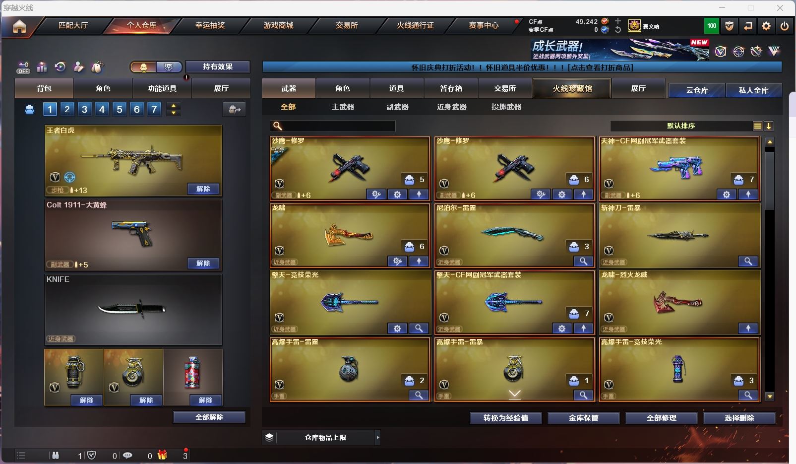 【亮点解析 裁决三件套 】【m200幻神】【m200竞技荣光+云悠悠 】【王者风神 】【王者白虎】【qbz金色蔷薇】【玄武】【火麒麟】【黑龙】【雷神】【黑骑士+卡】【毁灭】【裁决 +卡+流光秘银 】【武器:青龙 】【3手枪:修罗*2 天神 】【5刀具:龙啸 尼泊尔雷霆 斩神刀雷暴 竞技荣光 】【3雷套:雷霆雷 雷暴雷 竞技荣光 】【小人枪:毁灭孙三炮 】【音效卡:裁决音效卡 黑骑士音效卡 】【四防角色:职业经理 】