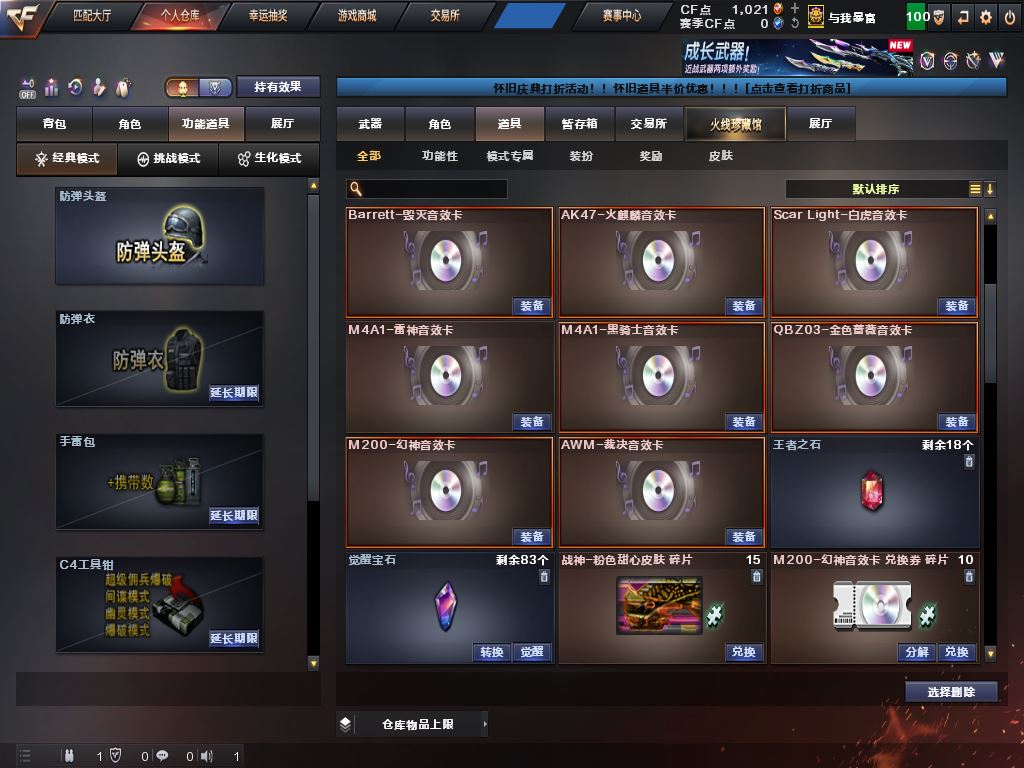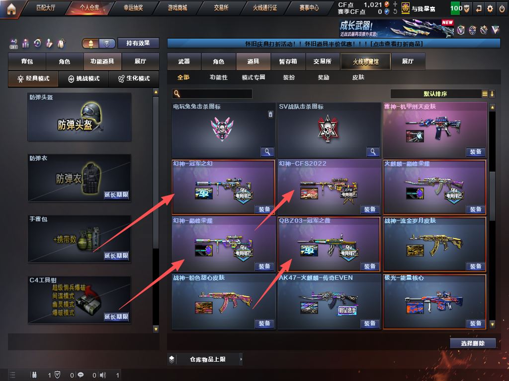 【亮点解析 东部传说女帝 幻神三件套4热门皮肤 裁决+音效卡】【传说女帝】【热门武器 【M200幻神+幻神音效卡+冠军之幻+巅峰荣耀+CFS2022+黄忠皮肤】【M200竞技荣光套】【98K星神】【SCAR白虎】【QBZ金色蔷薇+卡+冠军之薇皮肤】【4烈龙】【火麒麟+卡+冠军之心皮肤】【雷神+卡+冠军之魄+荣耀之魄皮肤】【黑骑士+卡+冠军之势皮肤】【青龙】【毁灭+卡+荣耀之怒+冠军之怒皮肤】【裁决+卡】【王者武器 王者冰魄 王者之幻 王者之魄 王者之光 王者之决 王者之怒 】【手枪 冠军之特*2 修罗 柯尔特-竞技荣光】【刀具 冠军之刃*2 屠龙 擎天 麒麟刺 王者之锋】【手雷套 雷霆雷*4 竞技荣光雷*2】【小人枪 雷神精英刀锋 火麒麟绝迹 黄金猫猫手套-白鲨】【四防角色 王者春】【超级背包 炫彩背包】【音效卡 幻神音效卡 毁灭音效卡 白虎音效卡 火麒麟音效卡 雷神音效卡 黑骑士音效卡 金色蔷薇音效卡 裁决音效卡】
