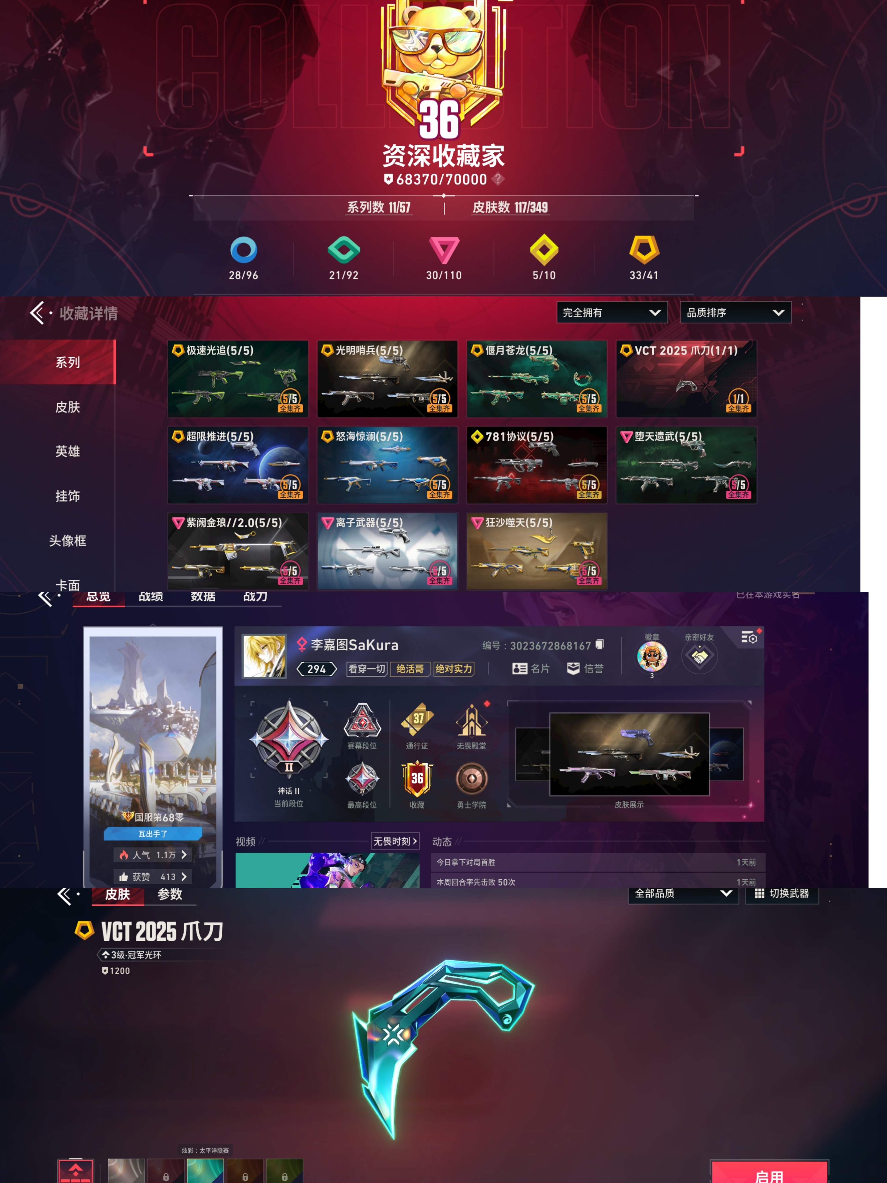 【全平台】 神豪36级收藏117皮肤45满特效11套♎炫彩VCT♎侦查偃月蝴蝶刀♎紫阙金琅全套♎