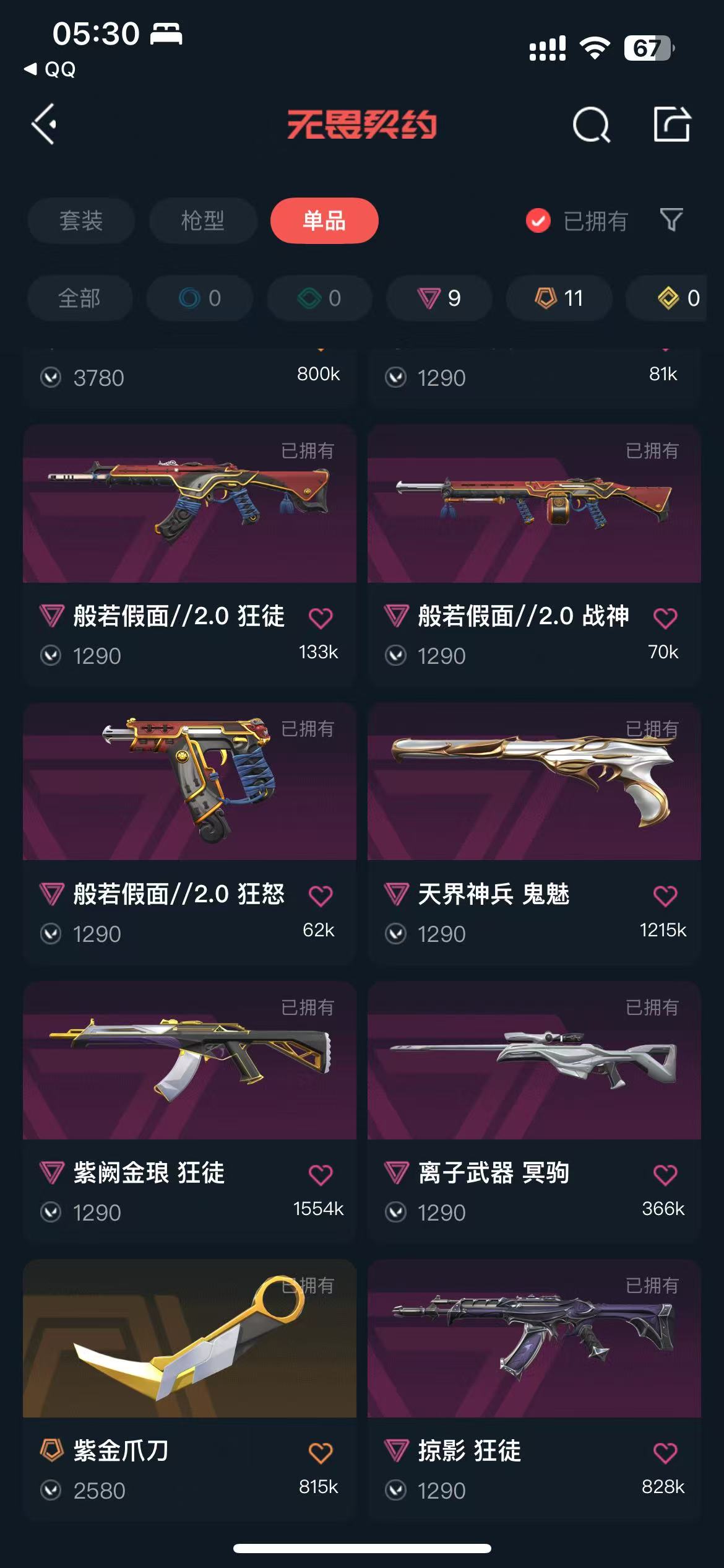 【当前段位:黄金I】般若套✨砰砰X✨鬼丸✨紫金爪刀✨盖世狂徒✨掠影狂徒✨紫阙狂徒✨显卡狂徒✨混沌AK✨塑水宗✨