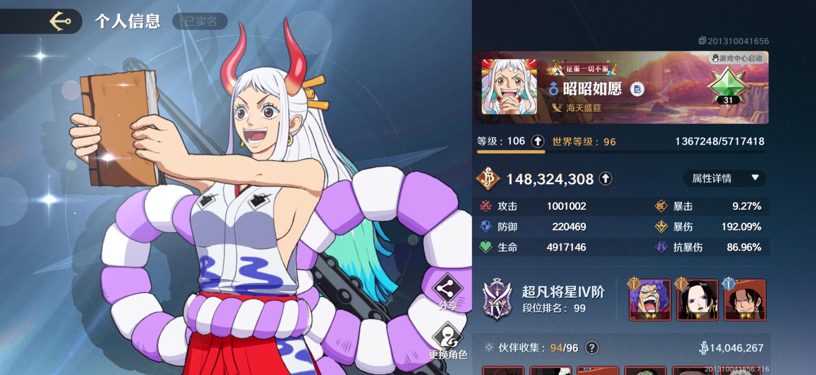 【苹果】 1.56亿战力🔥全伙伴🔥本区第八🔥全胜负已分🔥全红色伙伴(包含大和)