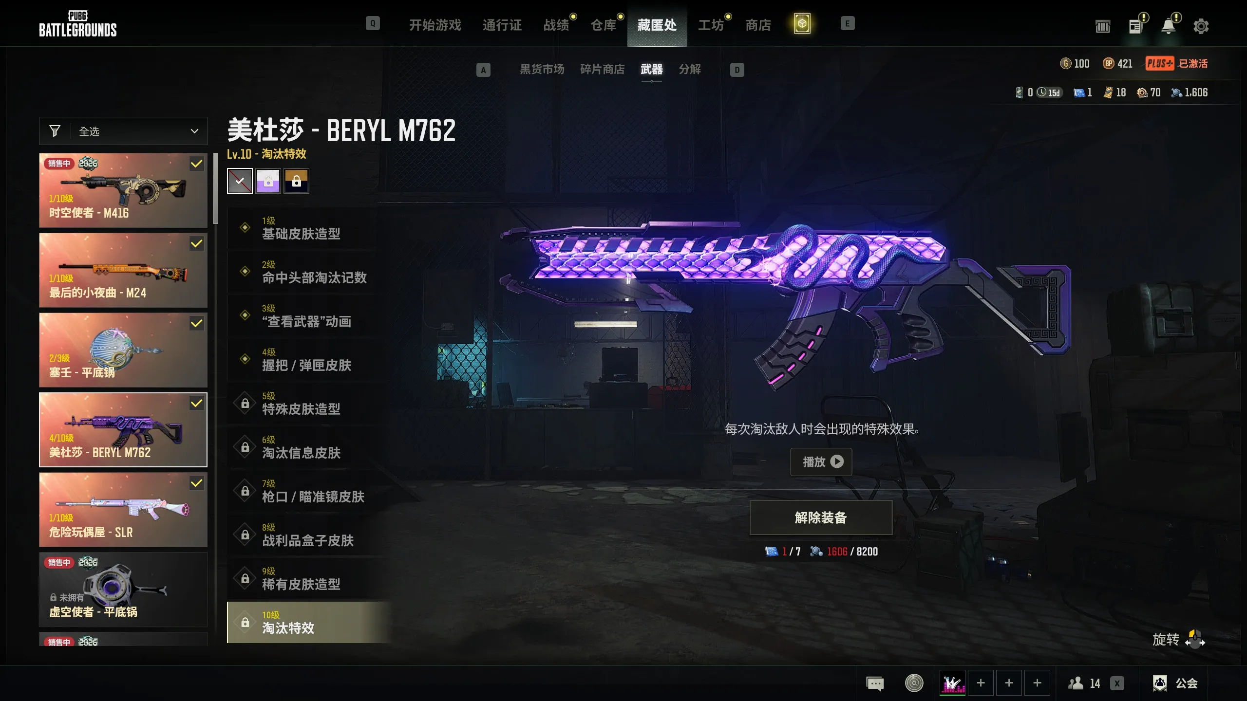 二级密码123456➕4升级➕4级美杜莎➕2级异色平底锅➕1级粉SLR➕1级M24➕美杜莎98K