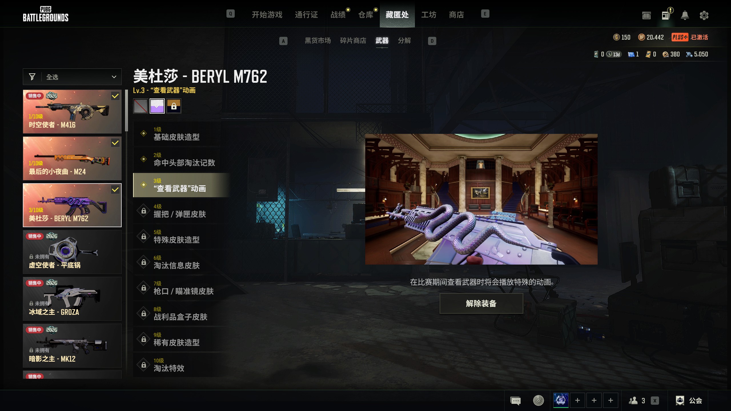 2级654321✅3升级✅3级白异色美杜莎762✅小夜曲M24✅时空M416✅女团✅比基尼套✅粉烟✅