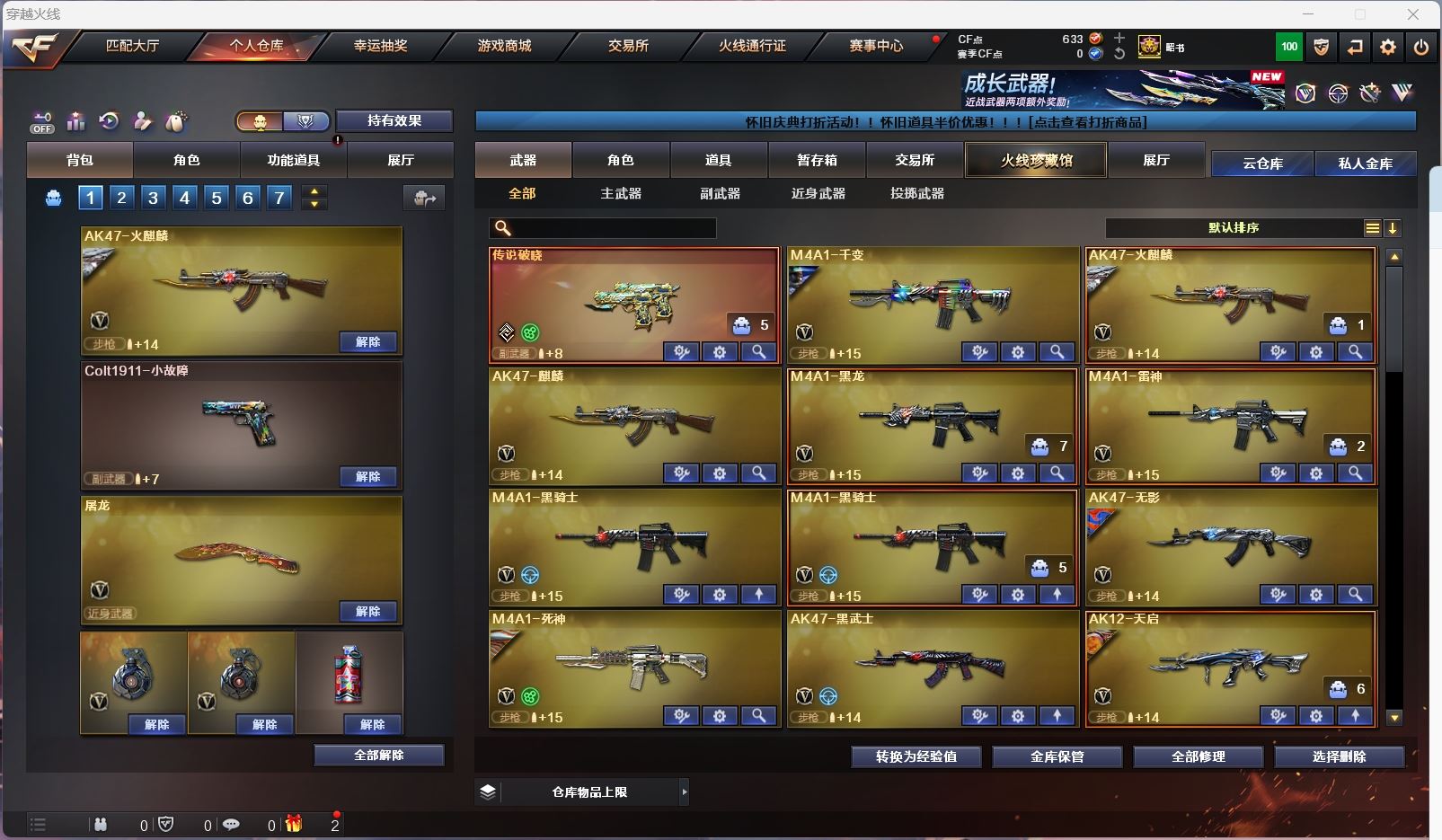 【m200幻神+幻兽雷】【6烈龙 炽芒蝶刃】【传说破晓 】【qbz金色蔷薇】【火麒麟】【黑龙】【雷神】【黑骑士】【毁灭+卡】【极光】【裁决 】【武器:武圣 王者之势 海王 天龙 】【9手枪:修罗*5 天神*2 武圣 沙鹰幻兽 】【14刀具:屠龙*5 龙啸 擎天 麒麟刺 云龙扇 女皇利刃幻兽 】【3雷套:幻兽雷 竞技荣光雷*2】【小人枪:火麒麟绝迹 天龙乔伊教练 】【音效卡:毁灭音效卡】【角色:葵 零 审判者 瞳 樱 王者瞳闭月羞花 王者涂鸦 】