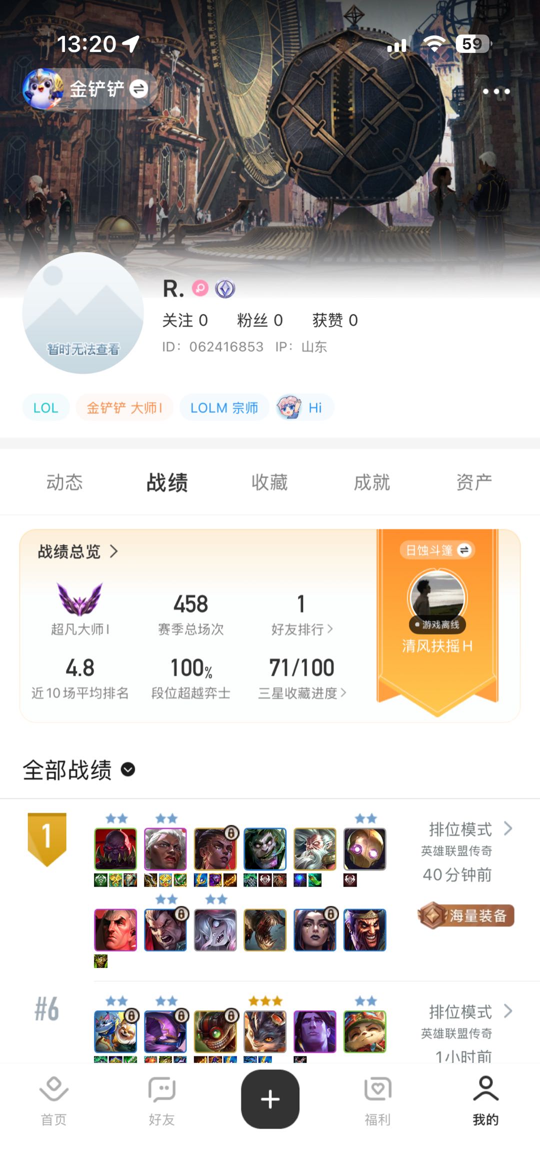 【苹果】 【金铲铲大师号|收藏级账号】88小小英雄+12万蓝宝石|含水晶玫瑰/青花瓷/黑夜使者/山海绘卷等热门