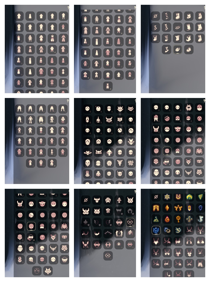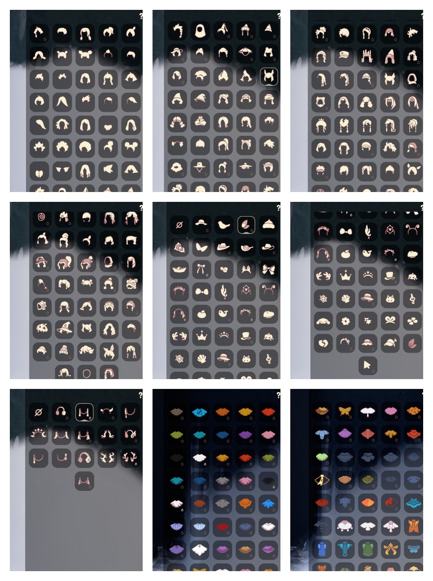 礼包:远行服饰 致爱装扮 祥云服饰 龙鳞束身 园丁装扮 暗彩装扮 女巫长裙 玉兔拖鞋 悦动跑鞋 优雅领巾 水母肩饰 姆明饰品 有友帽子 远行发型 温暖绒帽 彩虹帽 巫师帽 朋克发型 大桔大利 鲤跃龙门 雪花 贝壳 兔子 大耳狗头饰 四叶草 星月头饰 神鹿角 彩虹耳钉 彩虹耳机 巫树犄角 圣诞鹿角 tgc 创始人 围巾斗 欧若拉之翼 奉献斗篷 妮妮斗篷 新春福娃 年年有鱼 盘龙围巾 海龟斗篷 线框斗篷 蝙蝠斗 蛛网斗篷 皮皮猫斗 透明蛛丝斗 伯爵斗篷 鸦羽斗篷 瑞雪斗 白雪斗篷 绊爱套装 粽叶斗 音韵吉他 惊喜手杖 欧若拉之声 中秋灯笼 祥云纸伞 夏日阳伞 凯旋提琴 秋千 跷跷板 花憩茶桌 三人茶壶 野餐桌 古典音 乐桌 狐狸 小船 南瓜灯 皮皮猫 水晶球 篝火点心 自然之声 周年抱枕