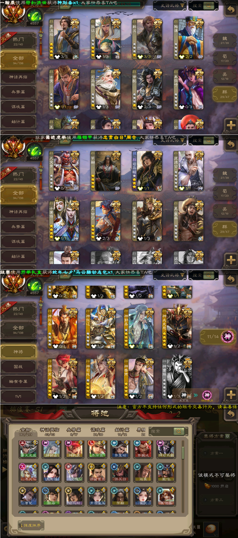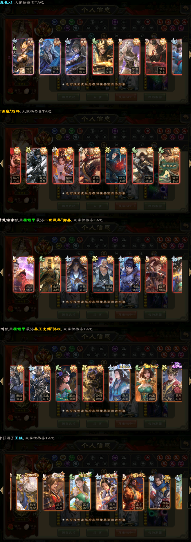 精品:SP关羽、SP曹仁、SP蔡文姬、乐进、曹昂、诸葛诞、朱灵、文聘、SP姜维、张春华、钟会、曹冲、郭淮、满宠、界王异、界曹操、界司马懿、界夏侯惇、界张辽、界许褚、界郭嘉、李典、曹真、韩浩史涣、陈群、曹、曹休、钟繇、司马朗、王基、李通、郭皇后、孙资刘放、辛宪英、界甄姬、吕虔、鲁芝、蒯越蒯良、界典韦、界荀彧、界徐晃、杜畿、界曹丕、毌丘俭、界邓艾、张恭、贾逵、界曹植、界曹彰、界满宠、界郭淮、卞夫人、辛毗、华歆、蔡贞姬、袁涣、王双、崔琰、毛玠、杨阜、阮慧、曹嵩、谋徐晃、谋于禁、谋甄姬、谋荀彧、界曹休、牵招、胡班、成济、玄毌丘俭、李昭焦伯、司马