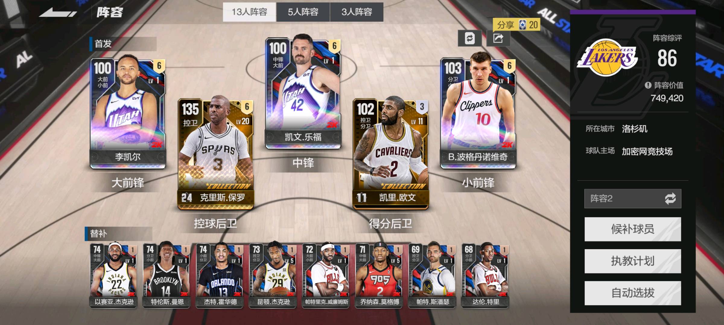 【安卓】 满突满级收藏24保罗带队❤️满突博格达诺维奇 凯文乐福 李凯尔❤️损坏阵容必追责