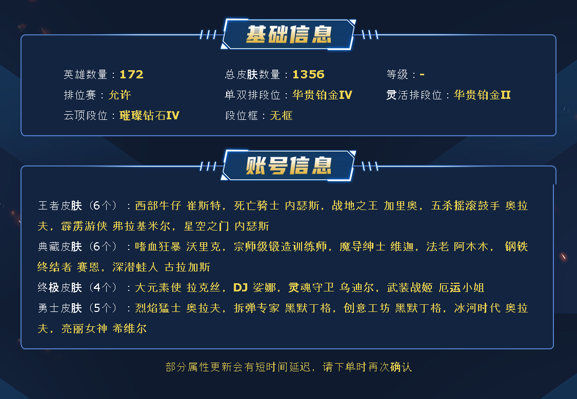 ~~喜欢记得收藏~~可排位~~1400皮全英雄~~租之前尽量查一下游戏ID,确保段位是您需要的,避免浪费您的时间~~请勿挂机逃跑故意送人头,谢谢合作,谢谢~~