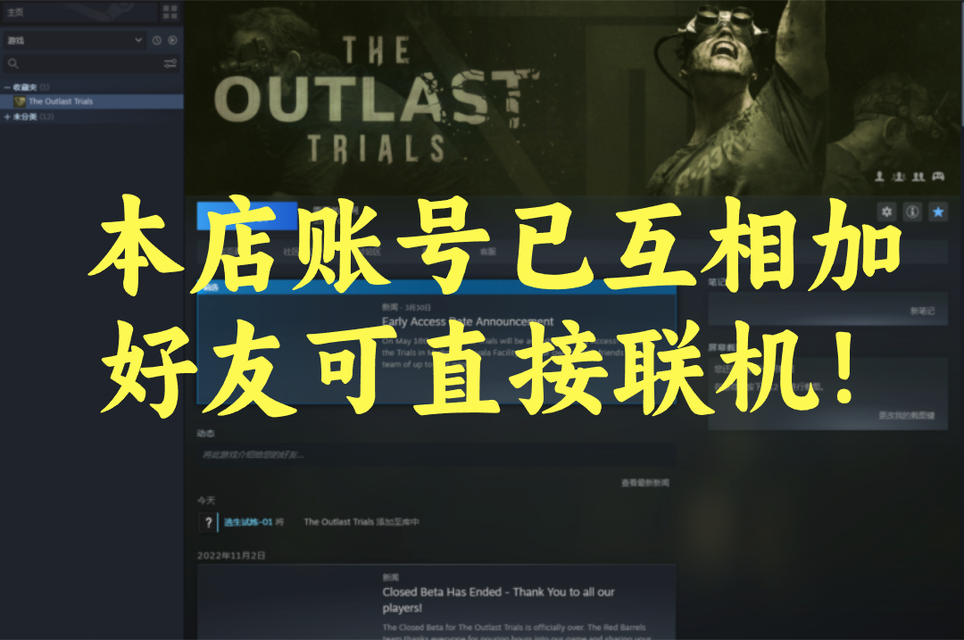 【租2送2】逃生试炼-The Outlast Trials》终极版-好友开通-本店账号已全部互加好友