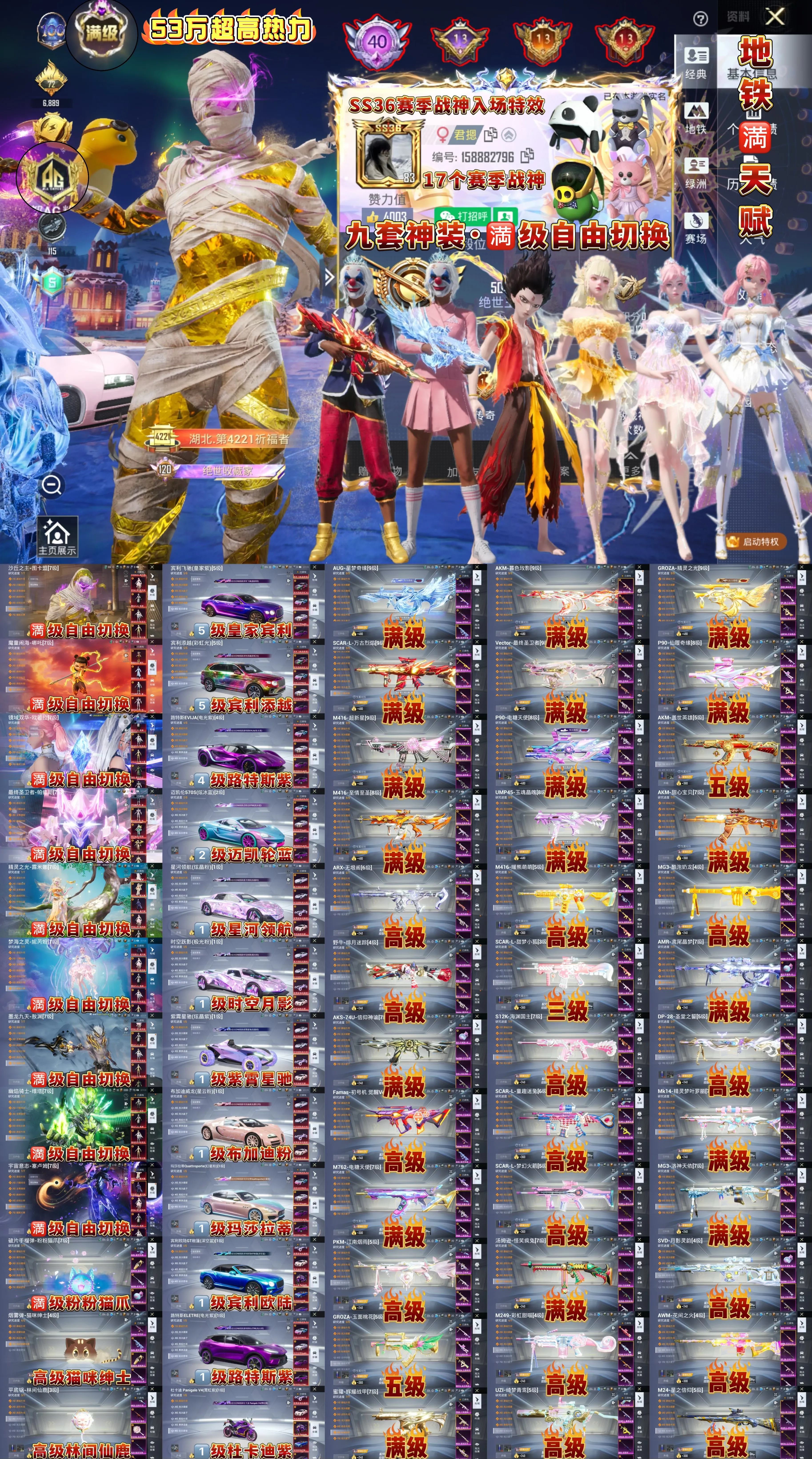 162粉,32载具,93特效枪,736套装,40王牌印记