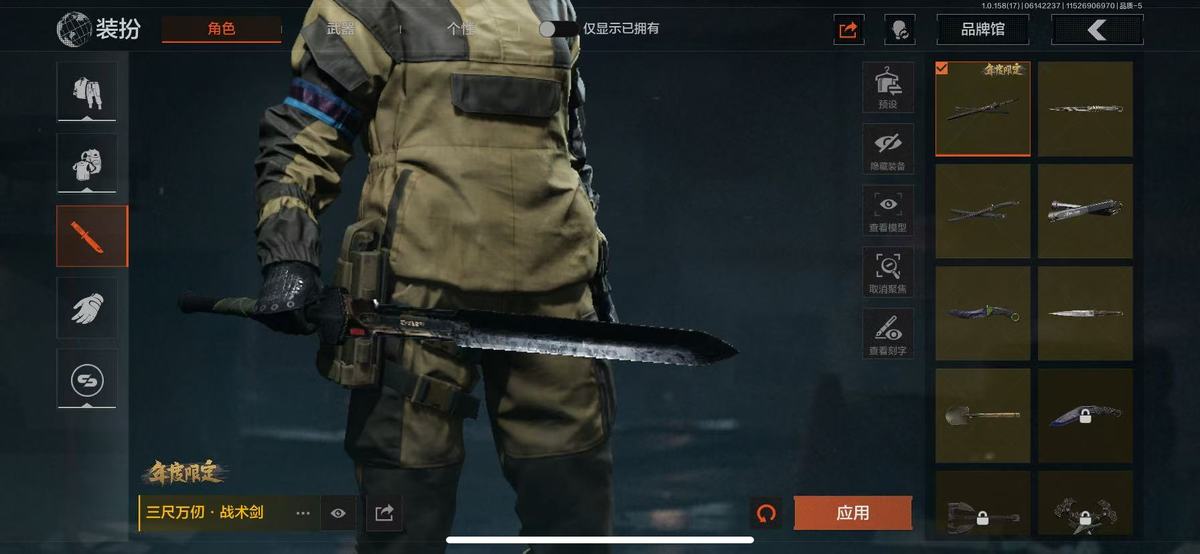 【苹果】 6刀皮9衣服4金衣7金枪 三尺万仞战术剑-盘牙彻甲短刃-明刀绣春-龙魂双节棍-急袭弯刀no看淘汰回放