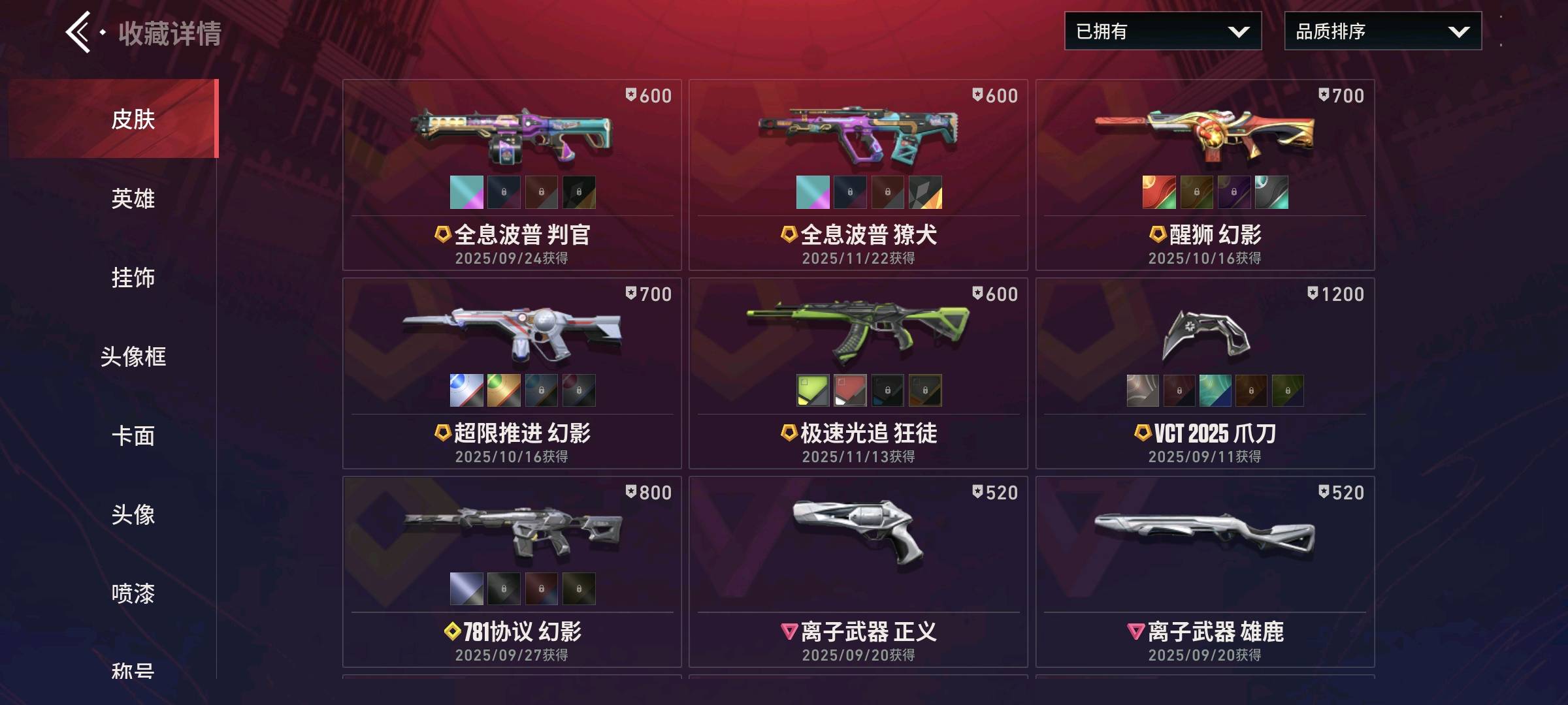 离子武器套装🌹醒狮幻影🌹超限推进幻影🌹781幻影🌹光追狂徒🌹盖亚狂徒