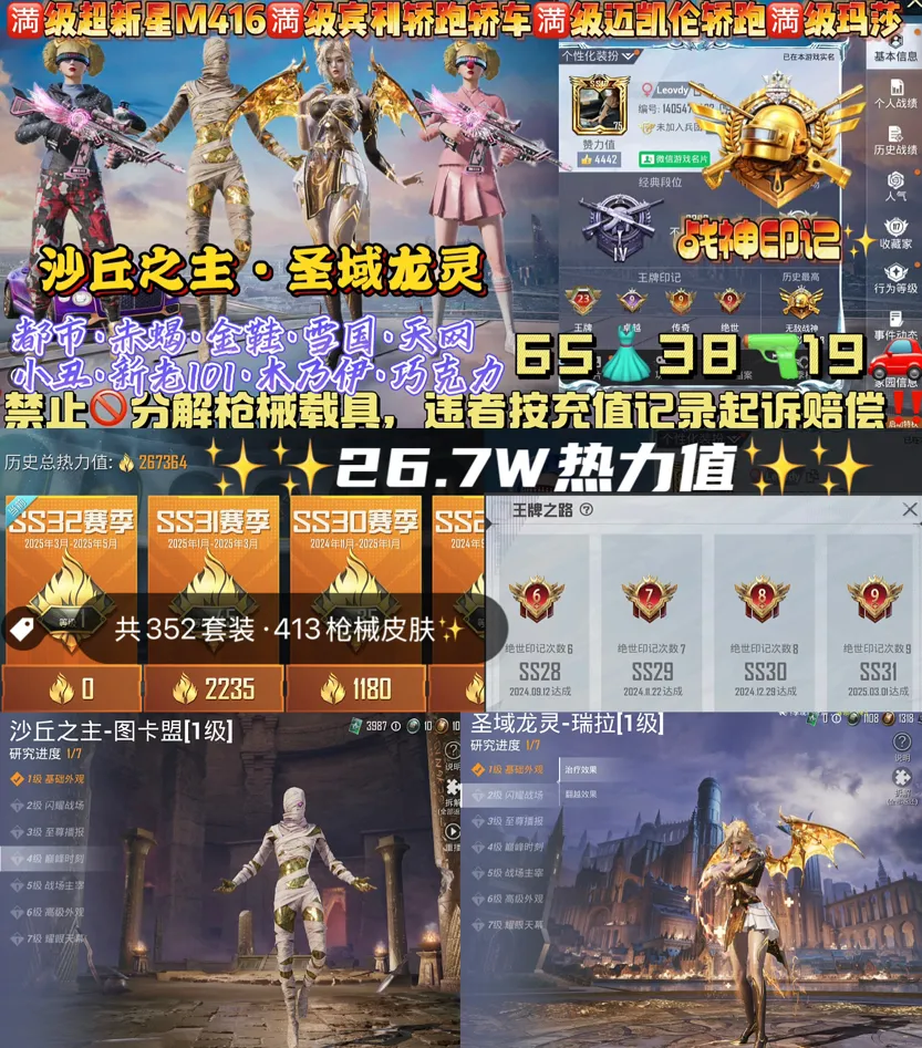 极品素材号,毁车罚款10000元毁枪罚款3000元人民币!租客须知◆ 本账号已在公安局备案,请勿对账号做出非法操作 如:开挂,坐挂车,使用第三方工具等,请您和谐游戏,如有损害财务的情形必追究到底如账号触发账号系统,会为您补上时间,到时不会下线,直到下一位租客租赁账号为止 请尽量不要以**进行维权 恶意维权,恶意维权者进行拉黑处理,永不放出 如果您喜欢本账号,可以点个收藏