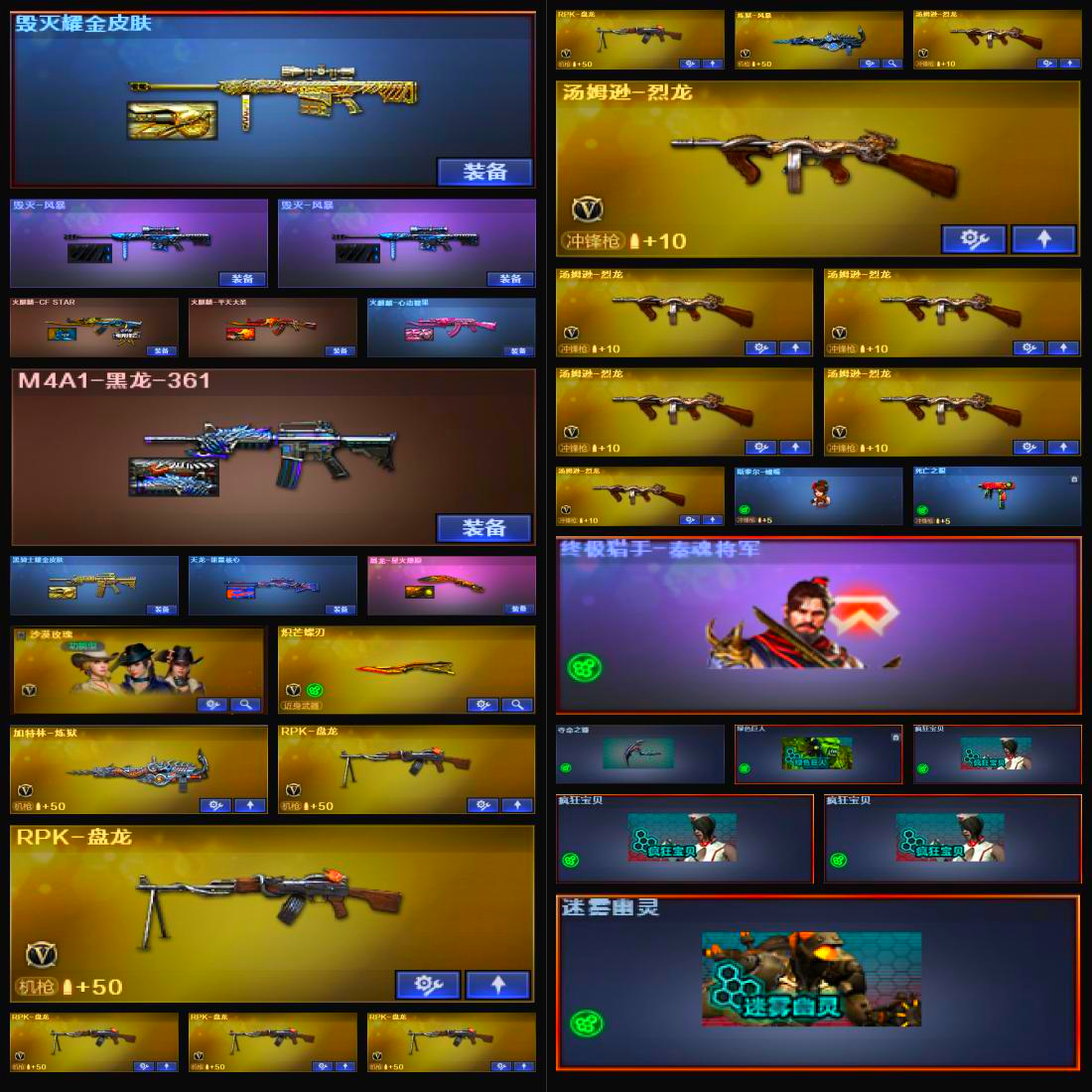【江苏一区】【6烈龙】【死亡之眼】【斯泰尔-蝴蝶】【6盘龙】【雷暴套装X7套】【M200-幻神】【M200-幻神音效卡】【王者星霆】【QBZ03-金色蔷薇】【QBZ03-金色蔷薇音效卡】【AK47-雷暴】【USP-雷暴】【炽芒蝶刃】【加特林-炼狱】【RPK-盘龙】【炼狱-风暴】【炼狱-百战金芒】【汤姆逊-烈龙】【斯泰尔-蝴蝶】【斯泰尔-幻面灵狐】【死亡之眼】【春】【电竞教官-云悠悠】【沙漠玫瑰】【王者玲珑-小乔】【修道士】【云海玲珑】【炫】【空】【M4A1-雷神】【雷神-宇航兔皮肤】【M4A1-雷神音效卡】【AK47-火麒麟】【火麒麟-平天大圣】【火麒麟-心动糖果】【火麒麟-CFSTAR】【AK47-火麒麟音效卡】【M4A1-黑骑士】【黑骑士耀金皮肤】【M4A1-黑骑士音效卡】【M4A1-黑龙-361】【Barrett-毁灭】【毁灭耀金皮肤】【毁灭-风暴】【Barrett-毁灭音效卡】