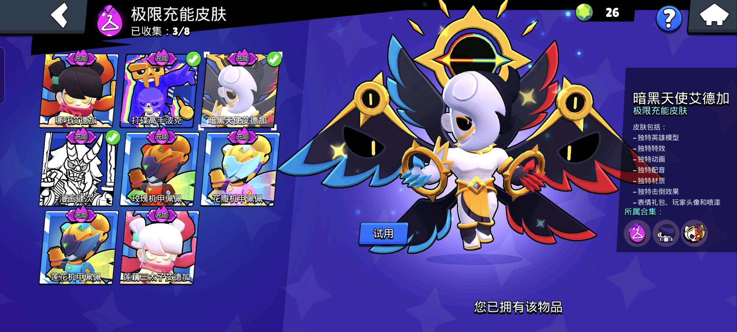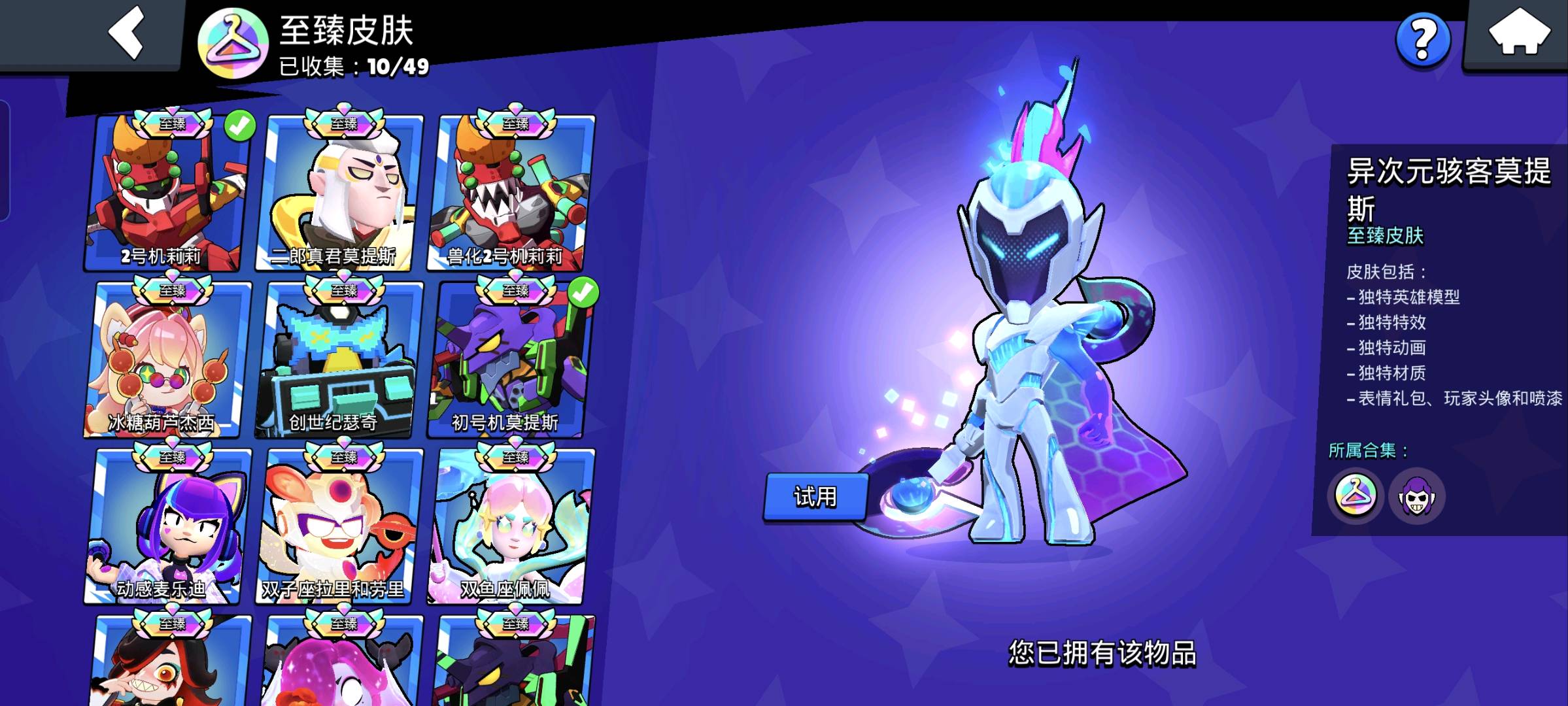 皮肤简单说几个,更多的请上号。霓影比比⭐EVA莫提斯、莉莉、麦克斯⭐机甲阿渤、乌鸦、莫提斯、埃德加、里昂⭐星际旅行者斯派克⭐无畏玩家雪梨⭐异次元骇客莫提斯⭐
