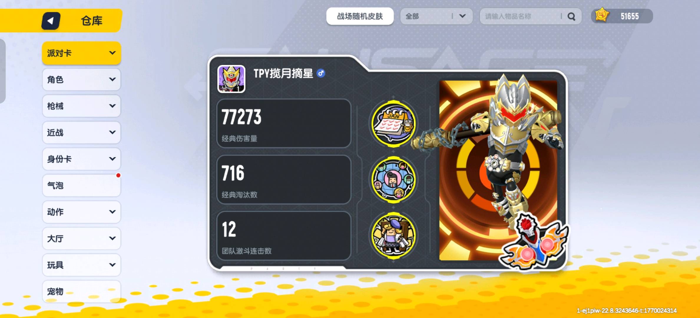 5万加美味值,稀有皮肤,枪皮,玩具皮肤很多,道具各