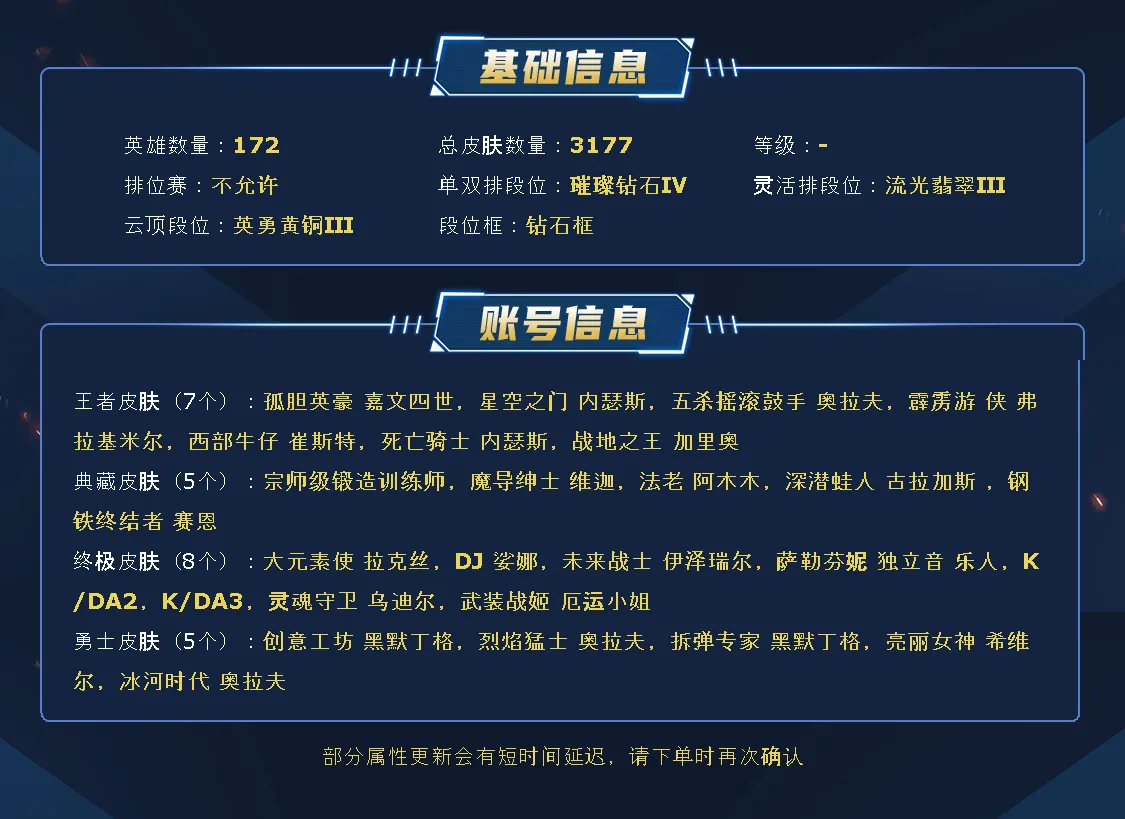 高端账号平民价噢~会有浮动,但是同等价值账号只要在货架上能看到绝对最低,随便比价