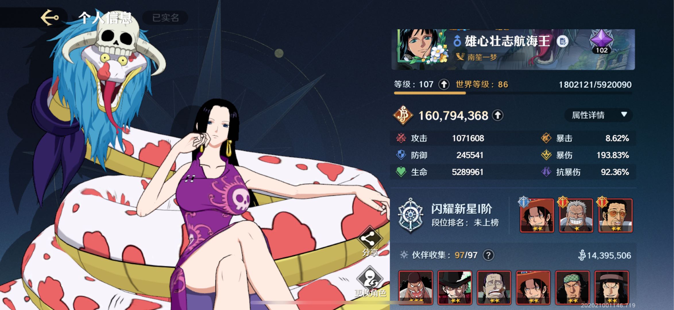 大和已秒 艾斯阿拉巴斯坦皮肤1.6亿榜一号 全角色 17红 28金 五星鹰眼船 多角色胜利特效