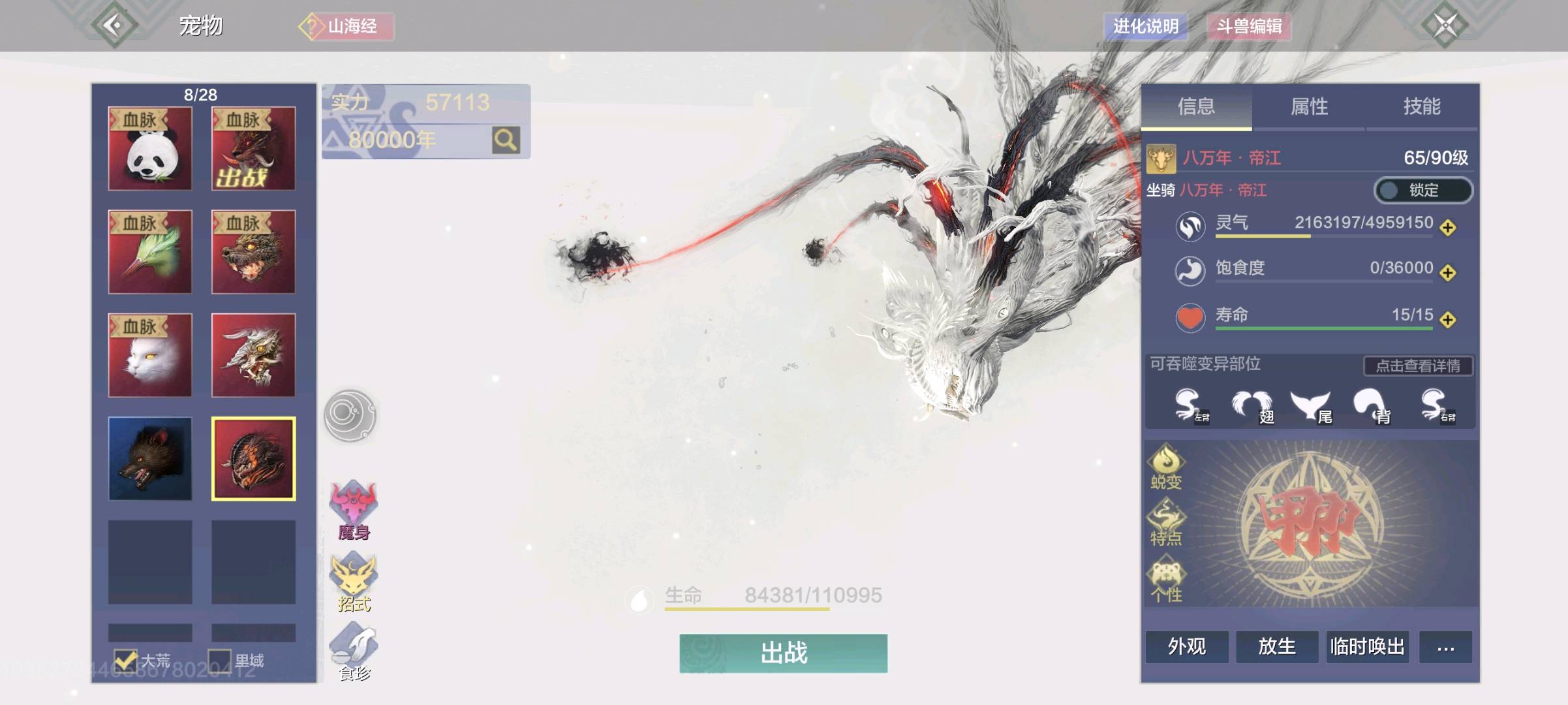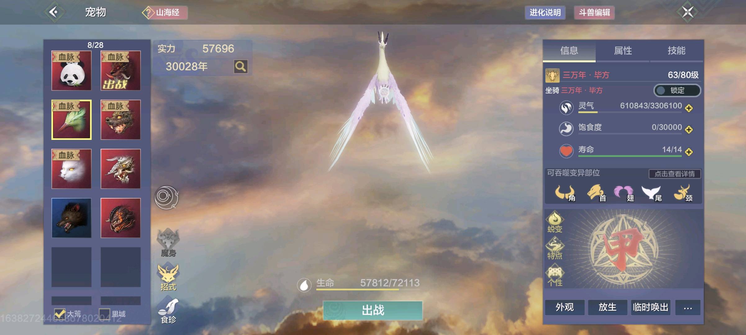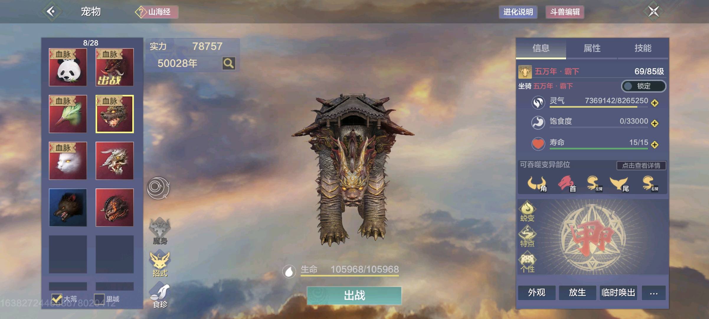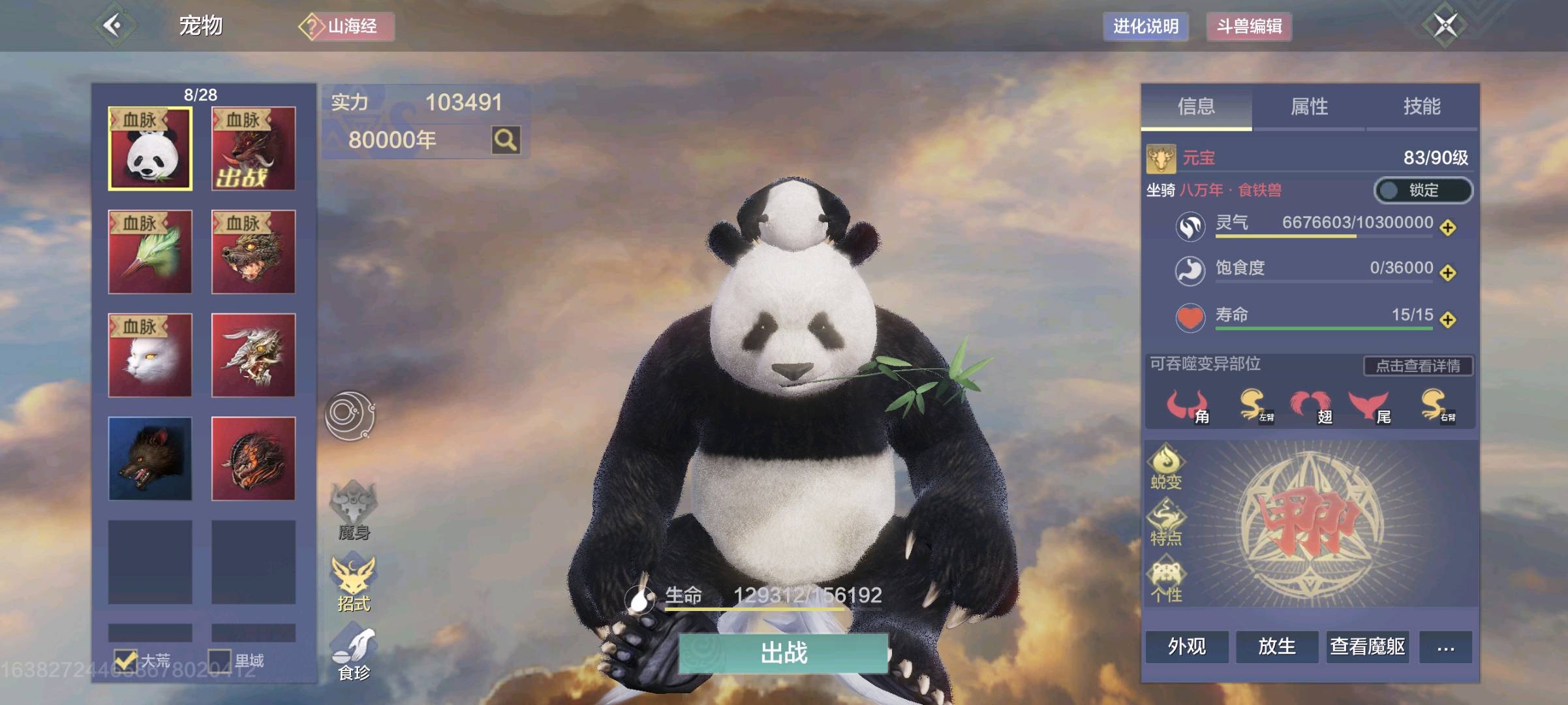 是一个玩了很久的号了,10万战力熊猫,有多个5万年宠物。战力11万