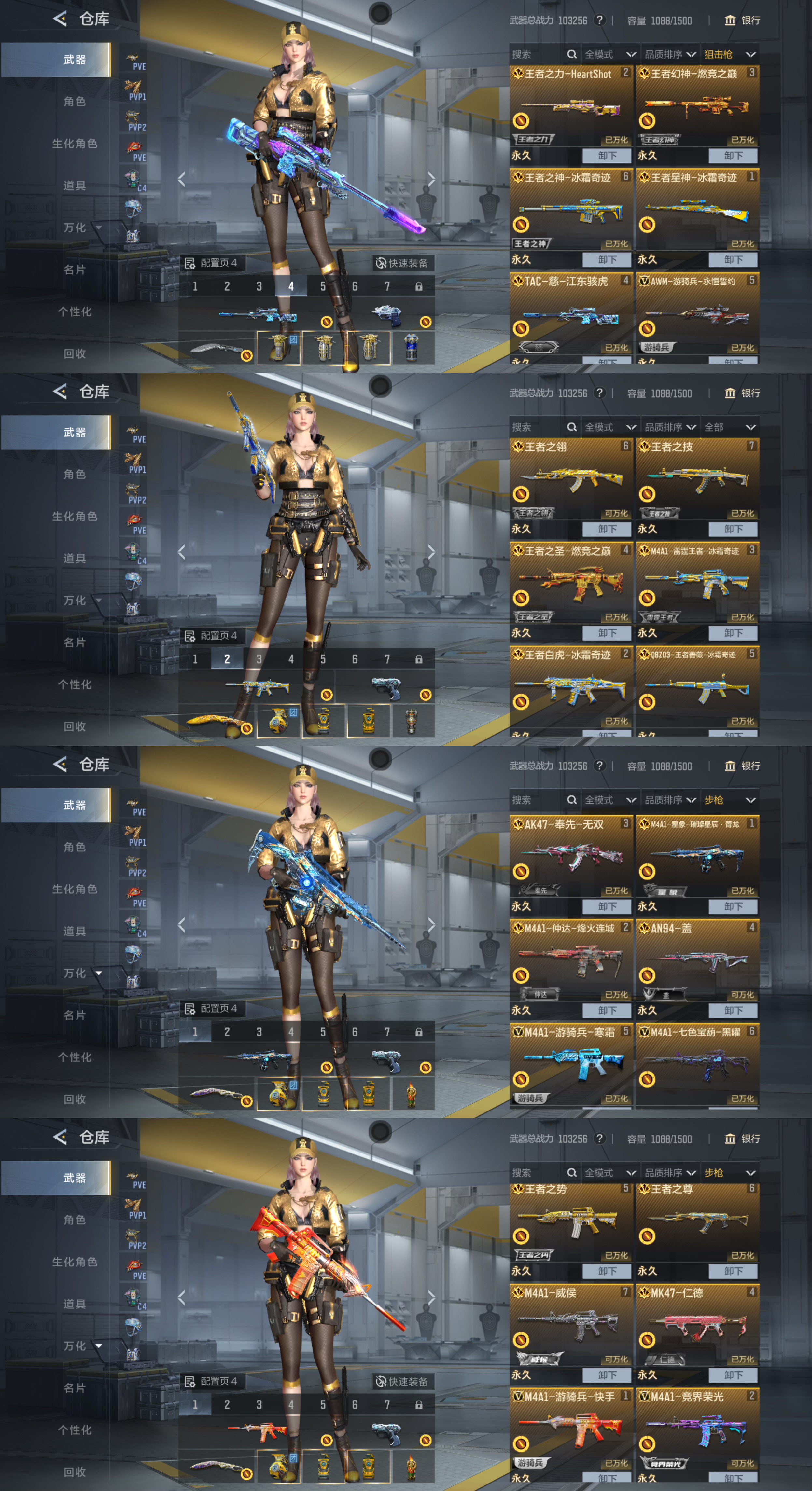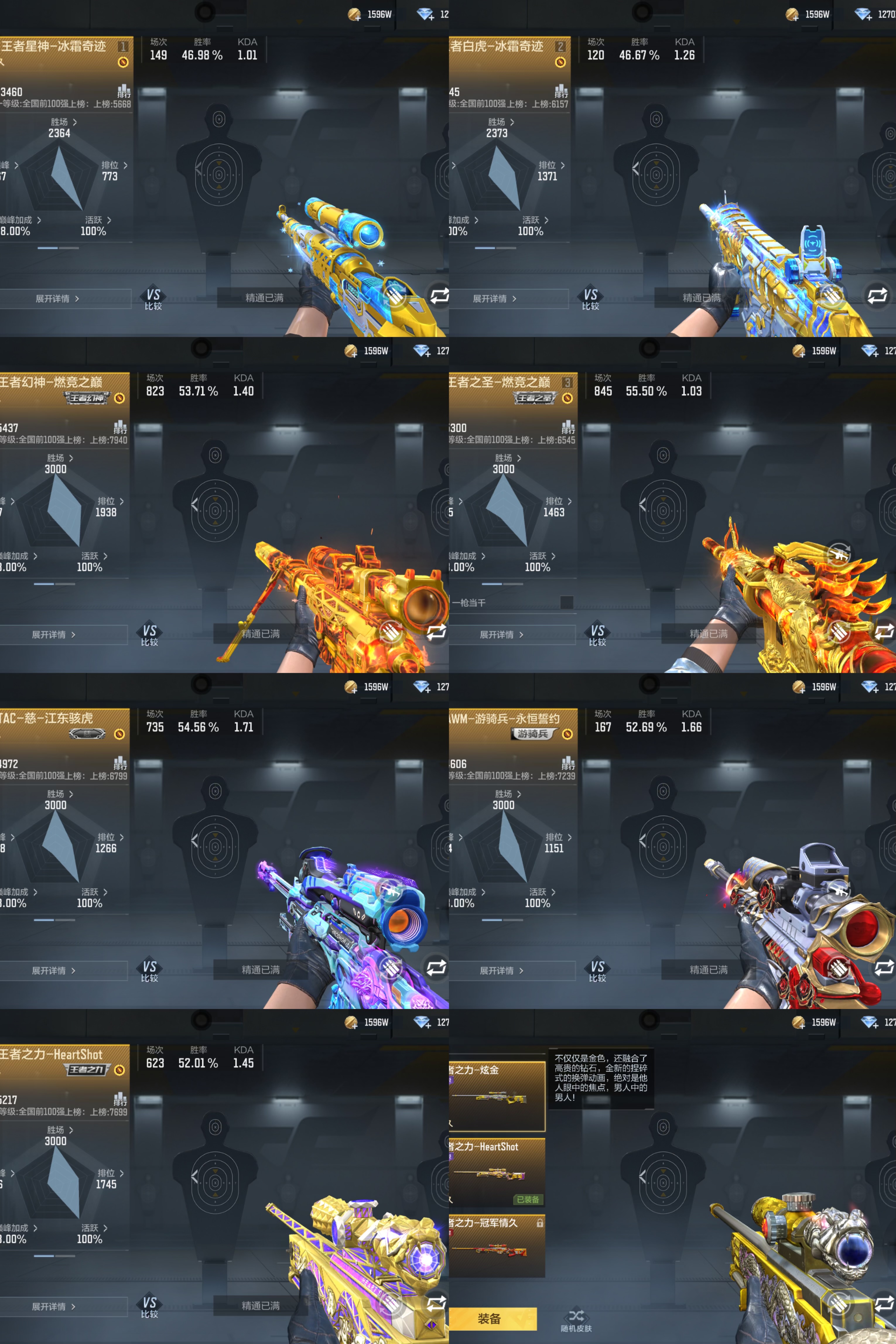 步枪: 王者蔷薇✨雷霆王者✨燃竞王圣✨王翎✨王竞✨王势✨星象璀璨星辰✨仲达烽火连城✨奉先无双✨七色葫芦✨盖✨游骑兵寒霜快手