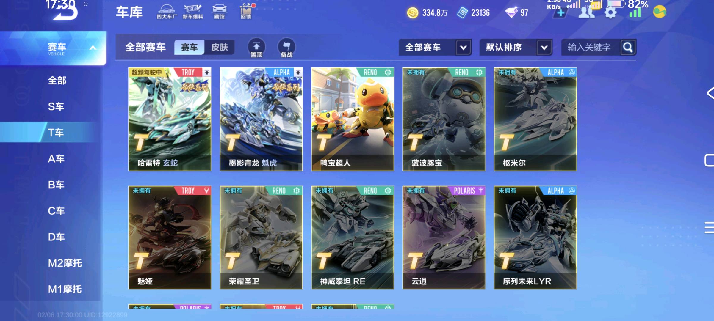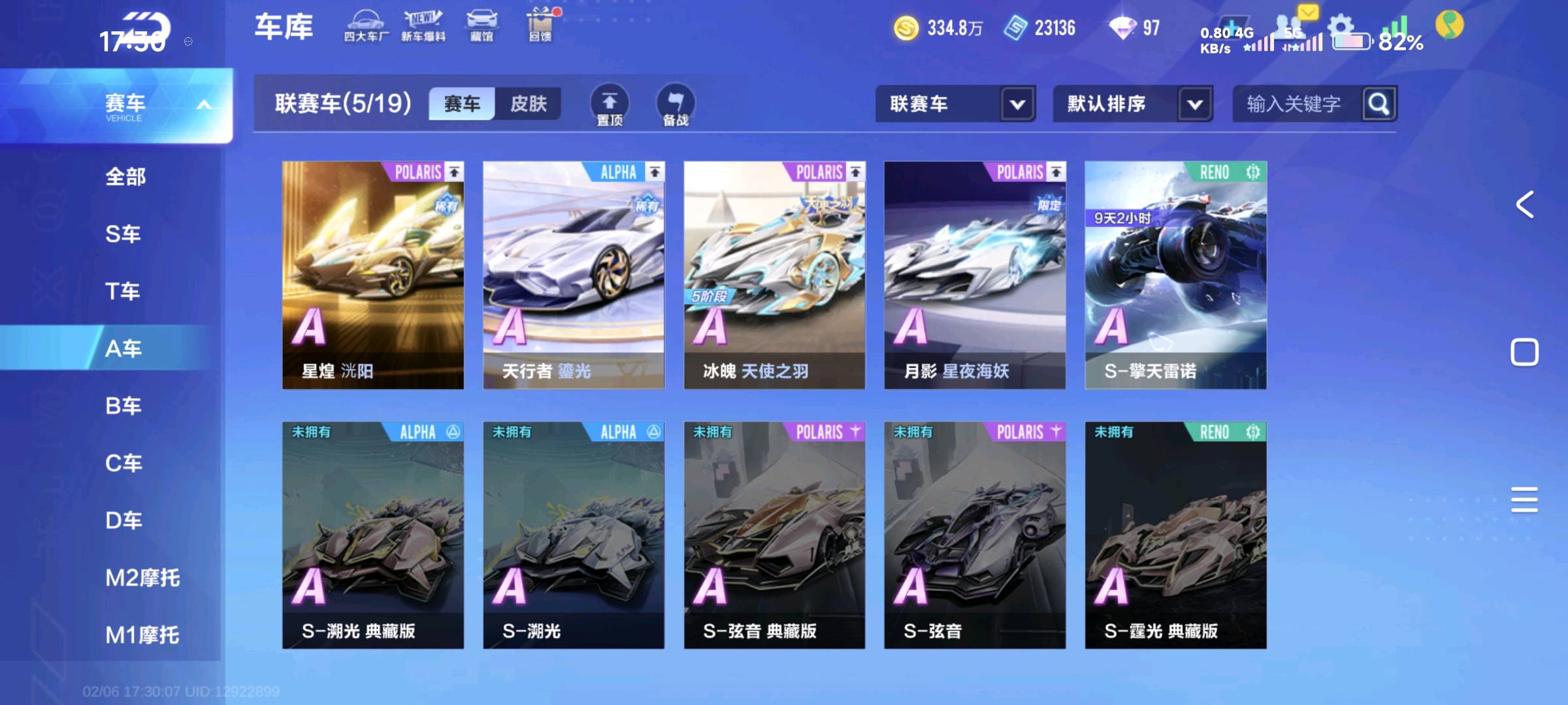 - 车辆皮肤: 哈雷特-玄蛇,墨影青龙-魁虎,冰魄-天使之羽(冰晶),星煌-洸阳(青瓷雅韵,涅舞),天行者(鎏光,凝霜),月影(星夜海妖,狼队)