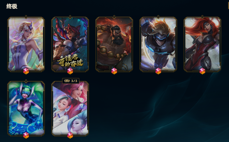 |全英雄2271皮幸存者杰斯龙虾冠军皮基本都有7终极88神话254限定114传说