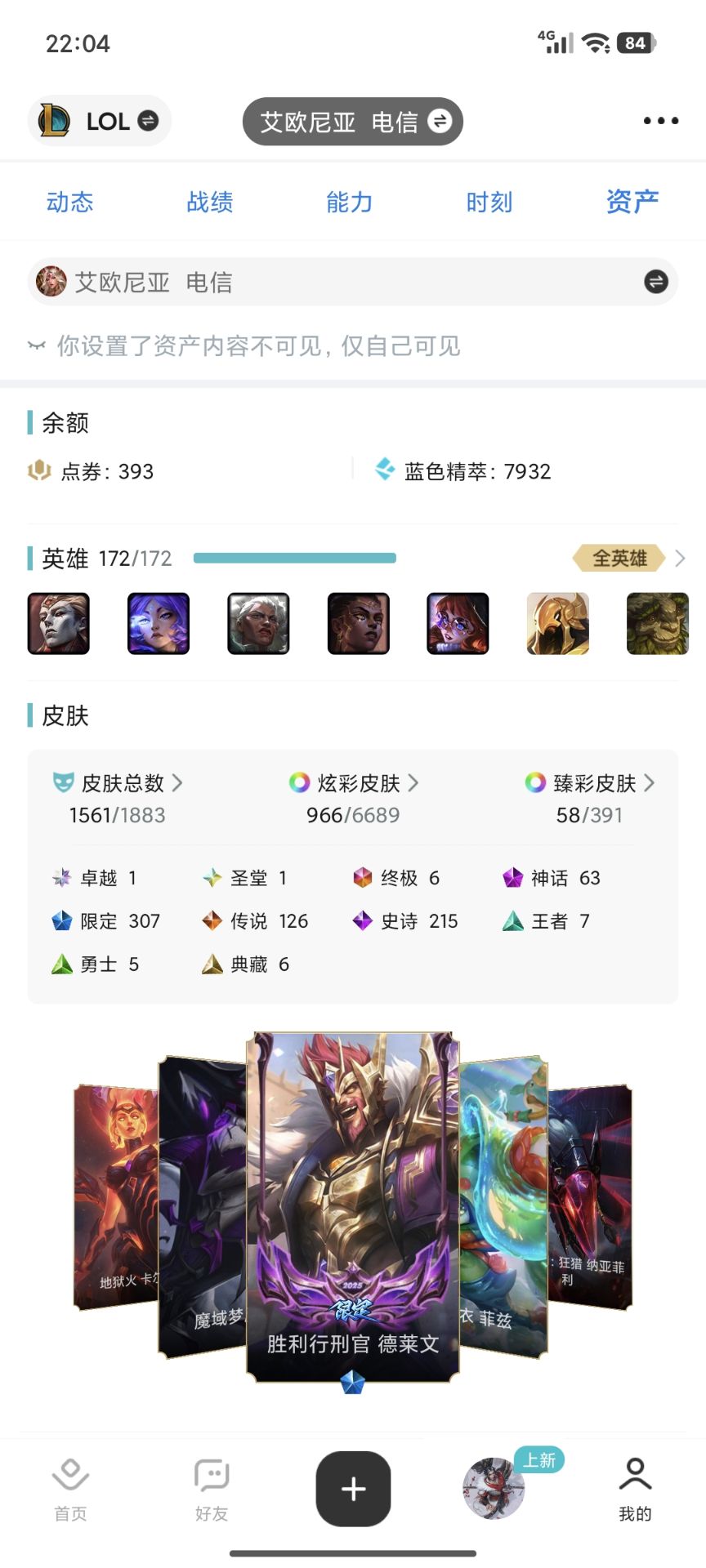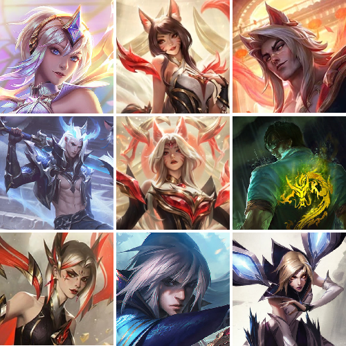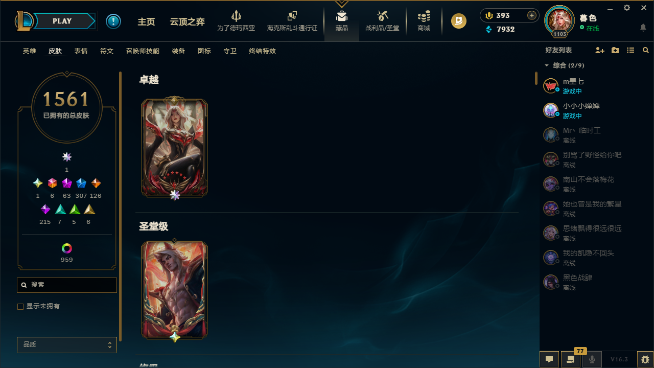 艾欧尼亚2500皮丨1561原皮丨不朽阿狸丨圣堂腕豪丨966炫彩丨307限定丨63神话丨58臻彩