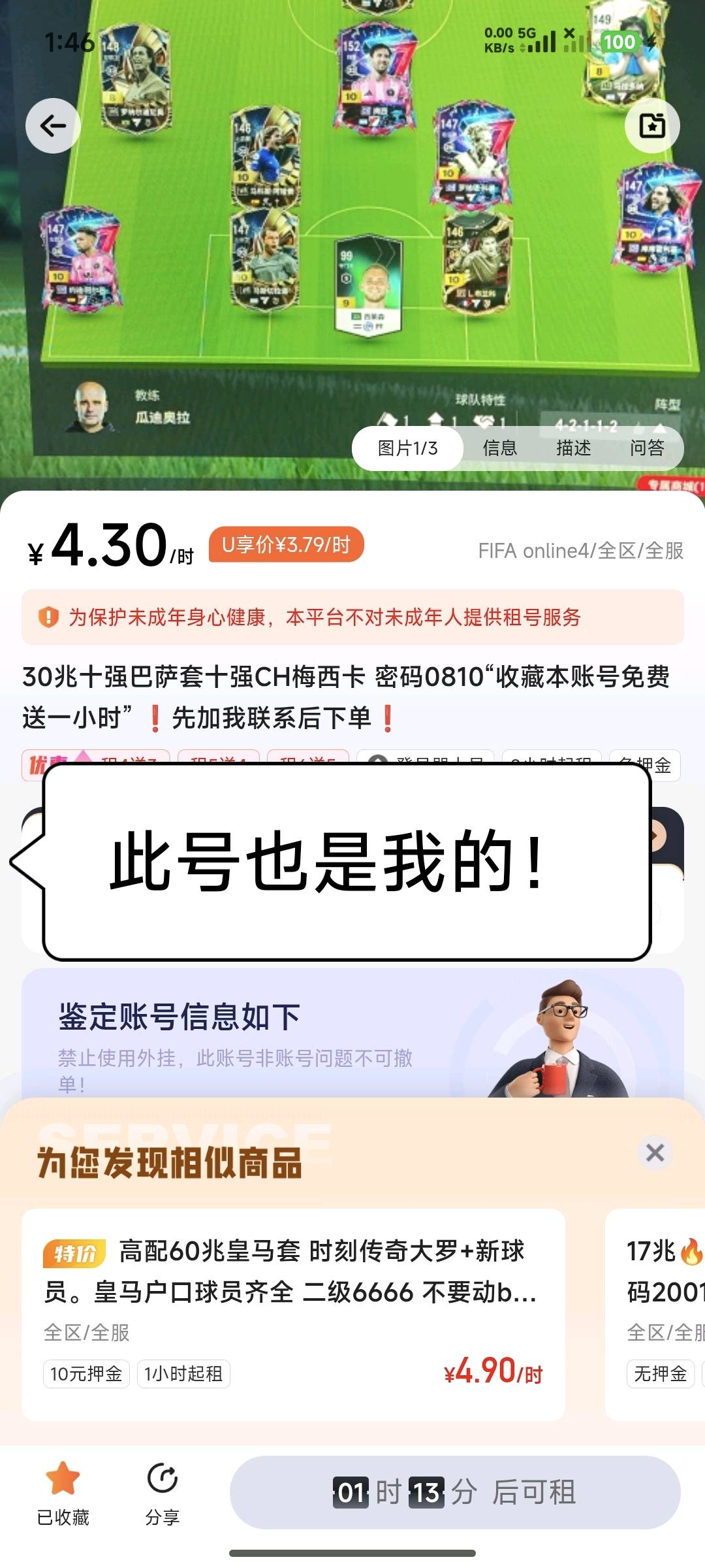 13兆FLG传奇套(二级密码:0000)还有一套巴萨阵容看上那个随便玩!