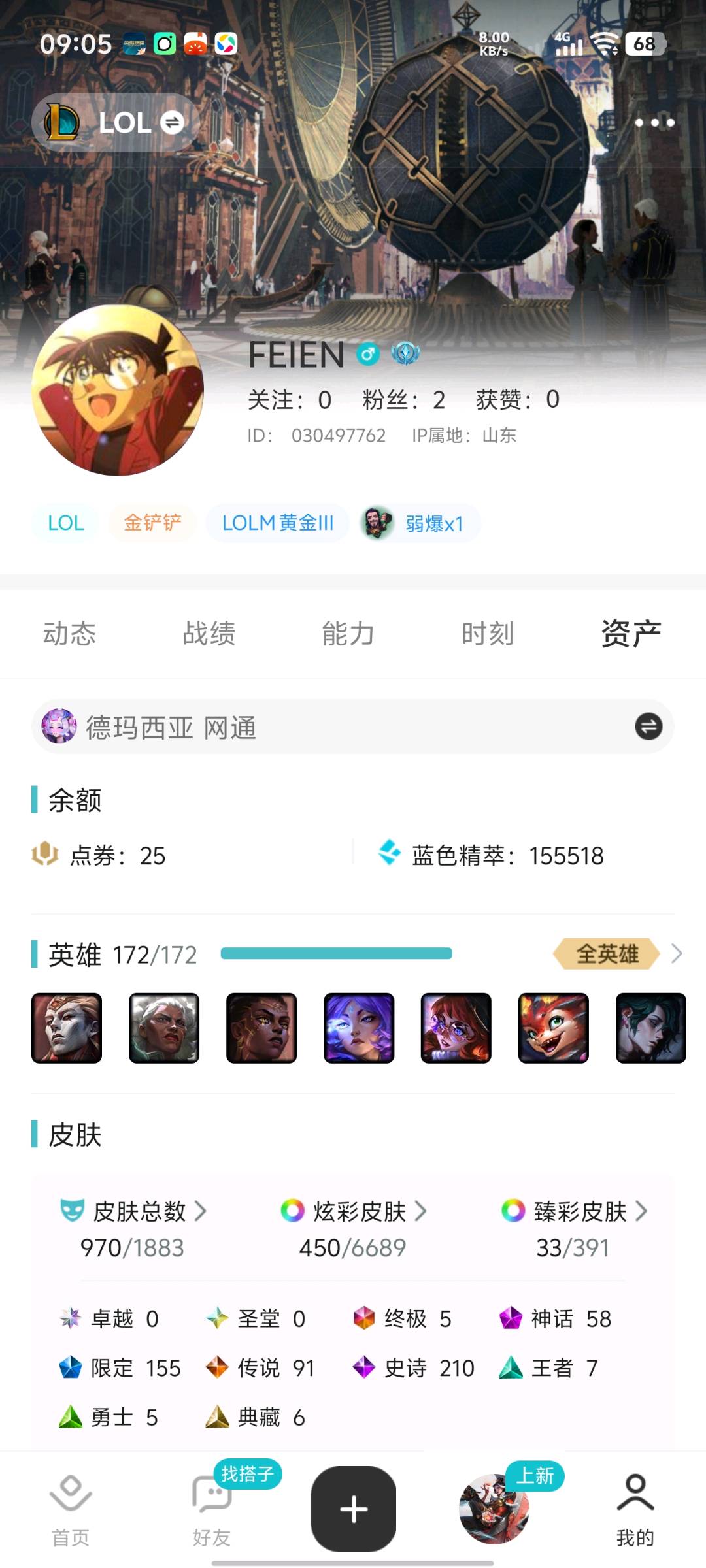 970皮❤️427炫彩❤️40至臻❤️5终极❤️58神话❤️155限定❤️91传说❤️