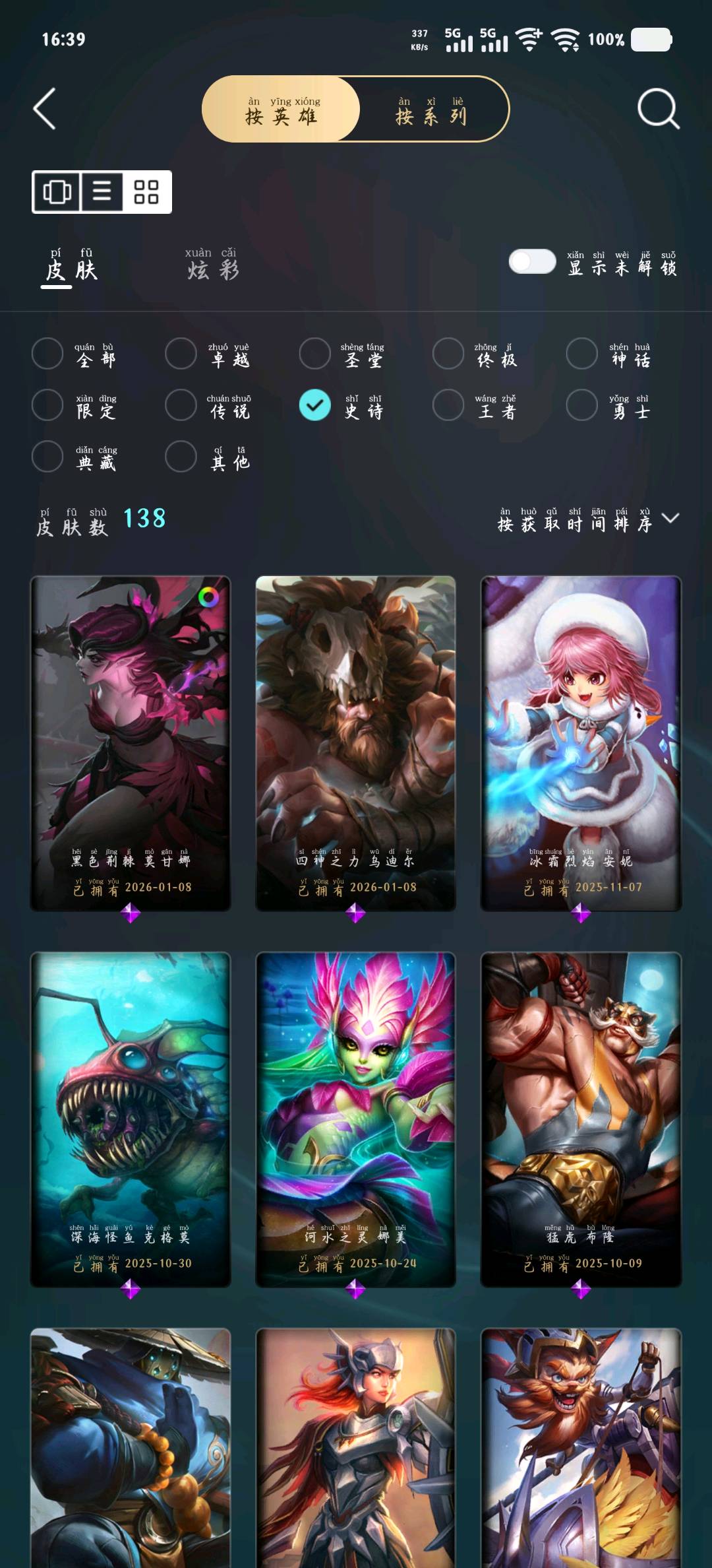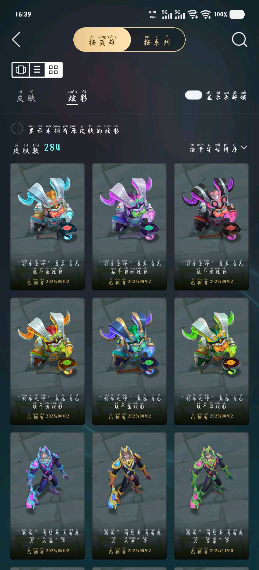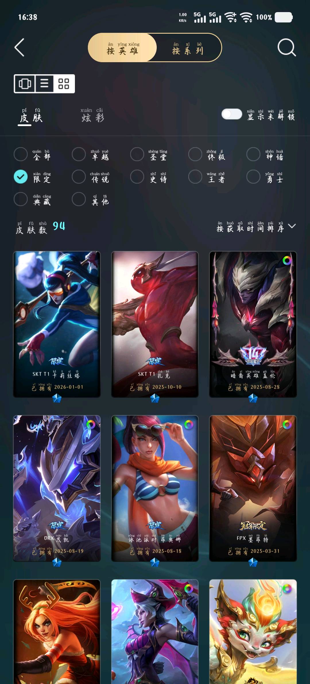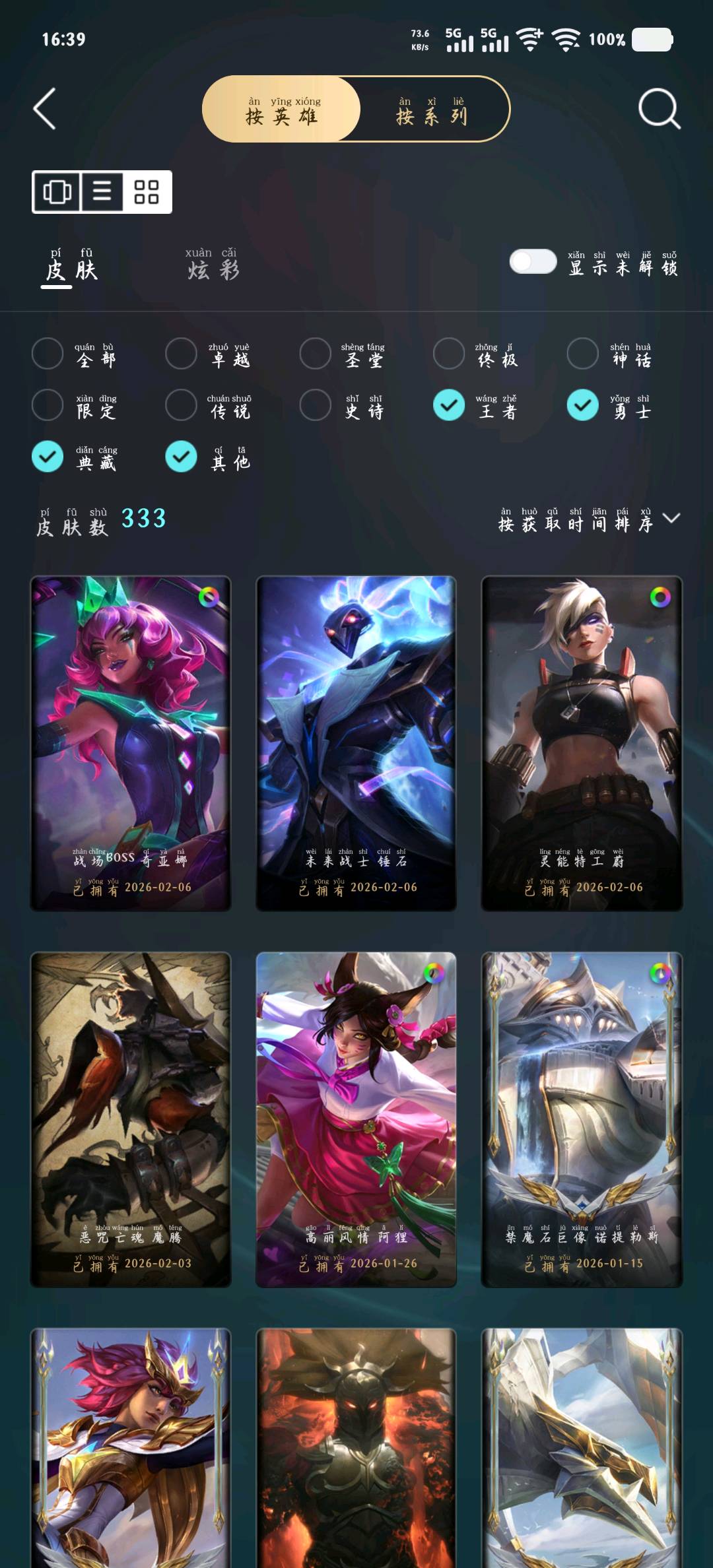 - 臻彩皮肤数量: 16