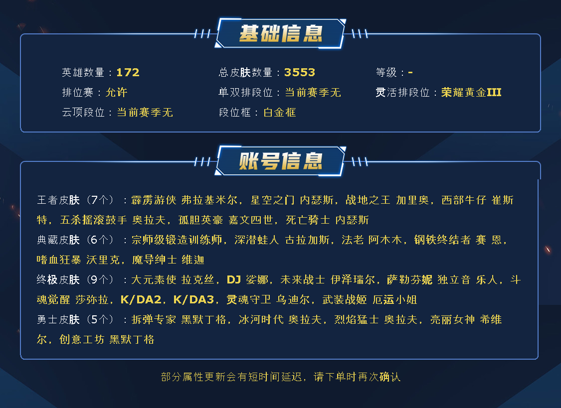 1695皮|144神话|9终极|冠军套|冰原女警|玉剑男女刀|殿堂传奇卡莎